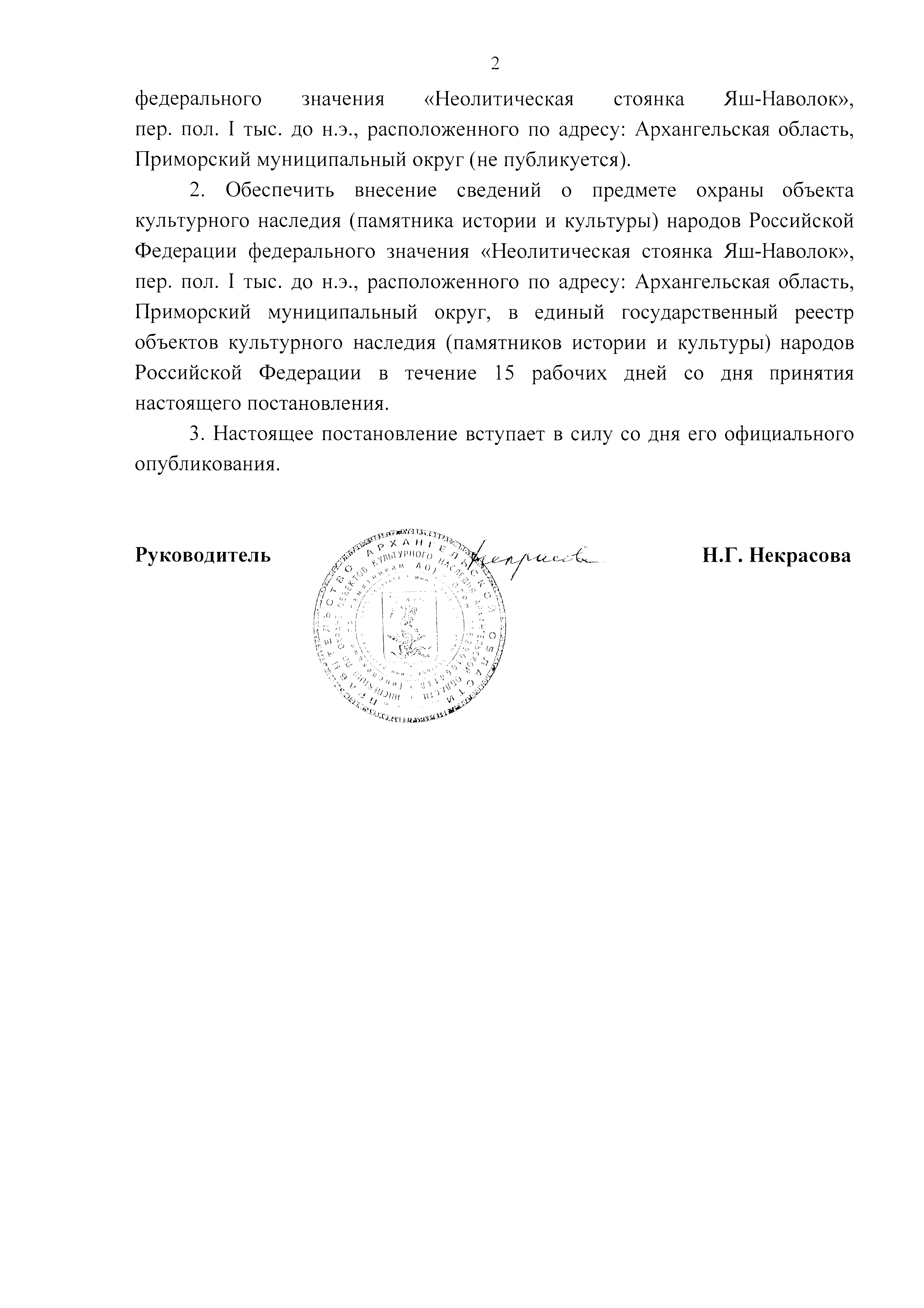 "Об утверждении предмета охраны объекта культурного наследия (памятника истории и культуры) народов Российской Федерации федерального значения "Неолитическая стоянка Яш-Наволок", пер. пол. I тыс. до н.э., расположенного по адресу: Архангельская область, Приморский муниципальный округ"