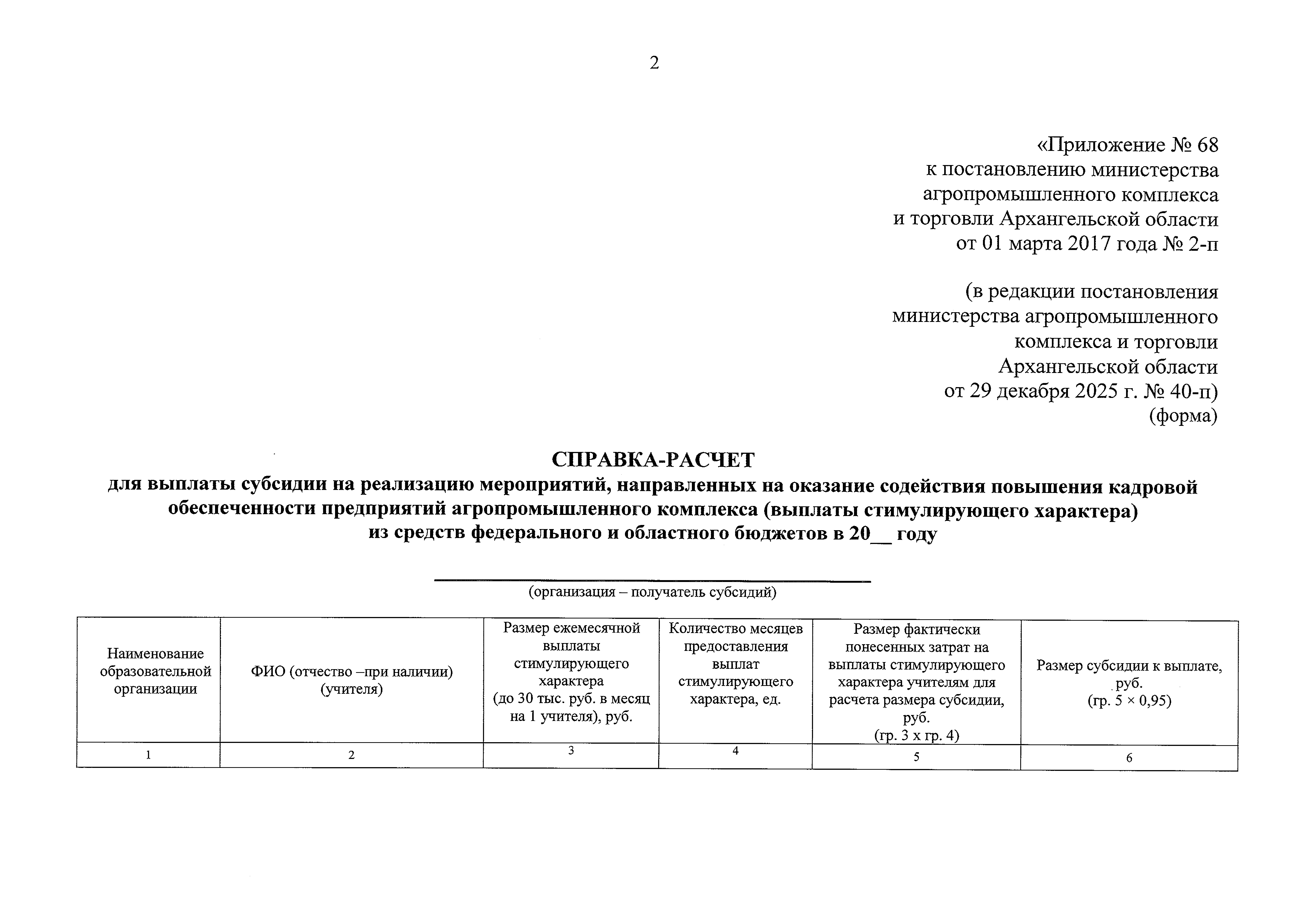 Постановление Министерства агропромышленного комплекса и торговли Архангельской области от 29.12.2025 № 40-п