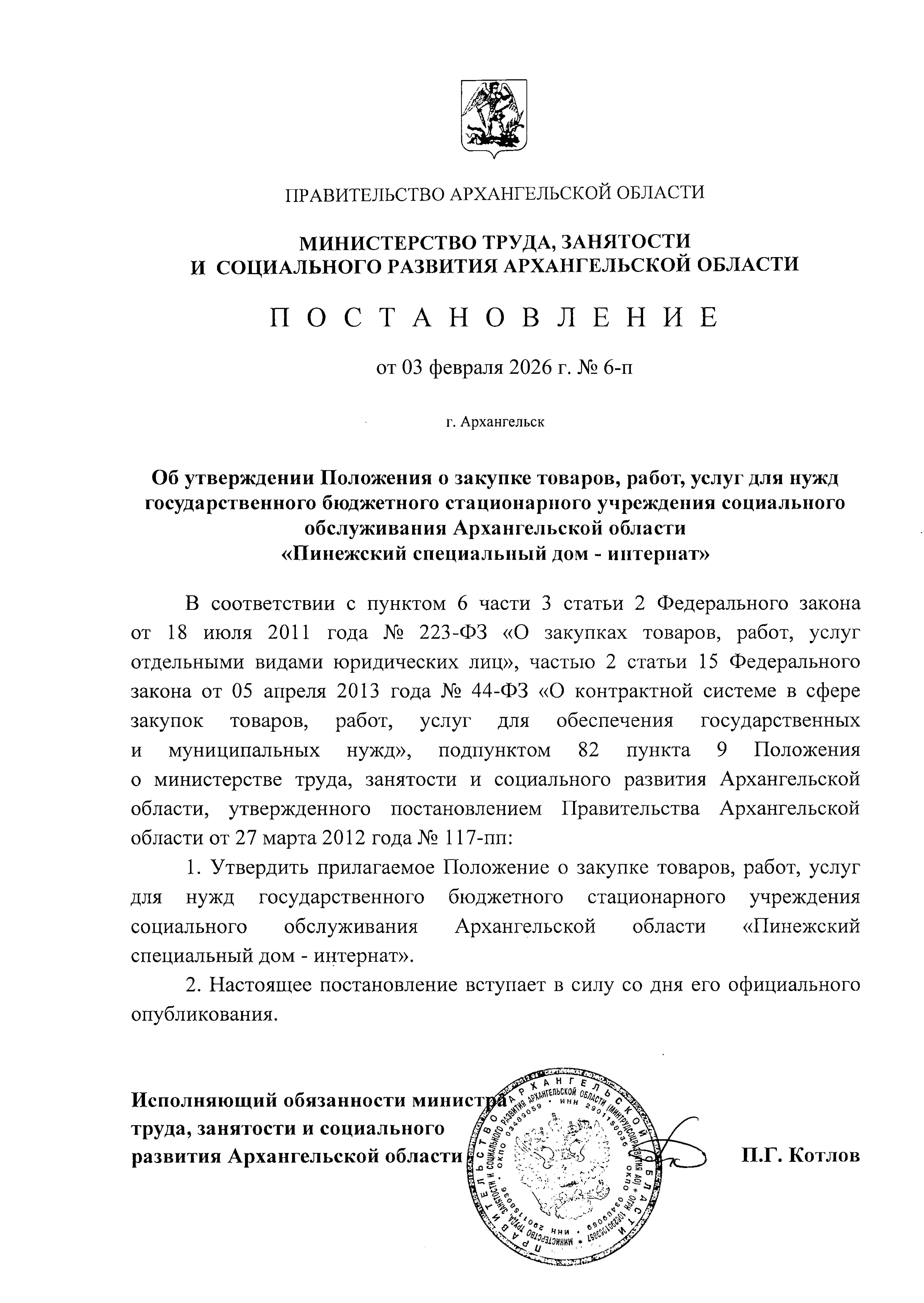 Постановление Министерства труда, занятости и социального развития Архангельской области от 03.02.2026 № 6-п