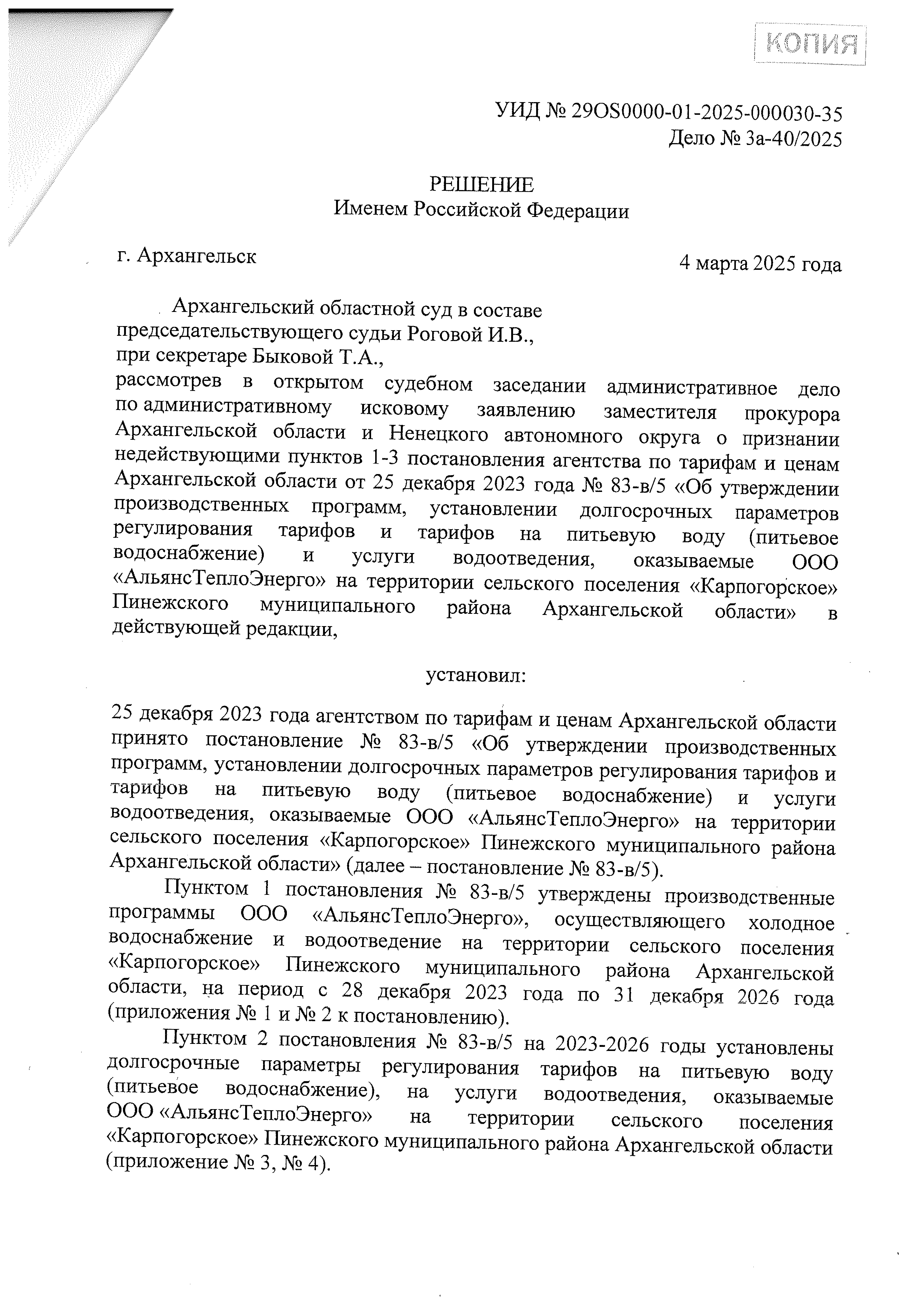 Решение Архангельского областного суда от 04.03.2025 № 3а-40/2025