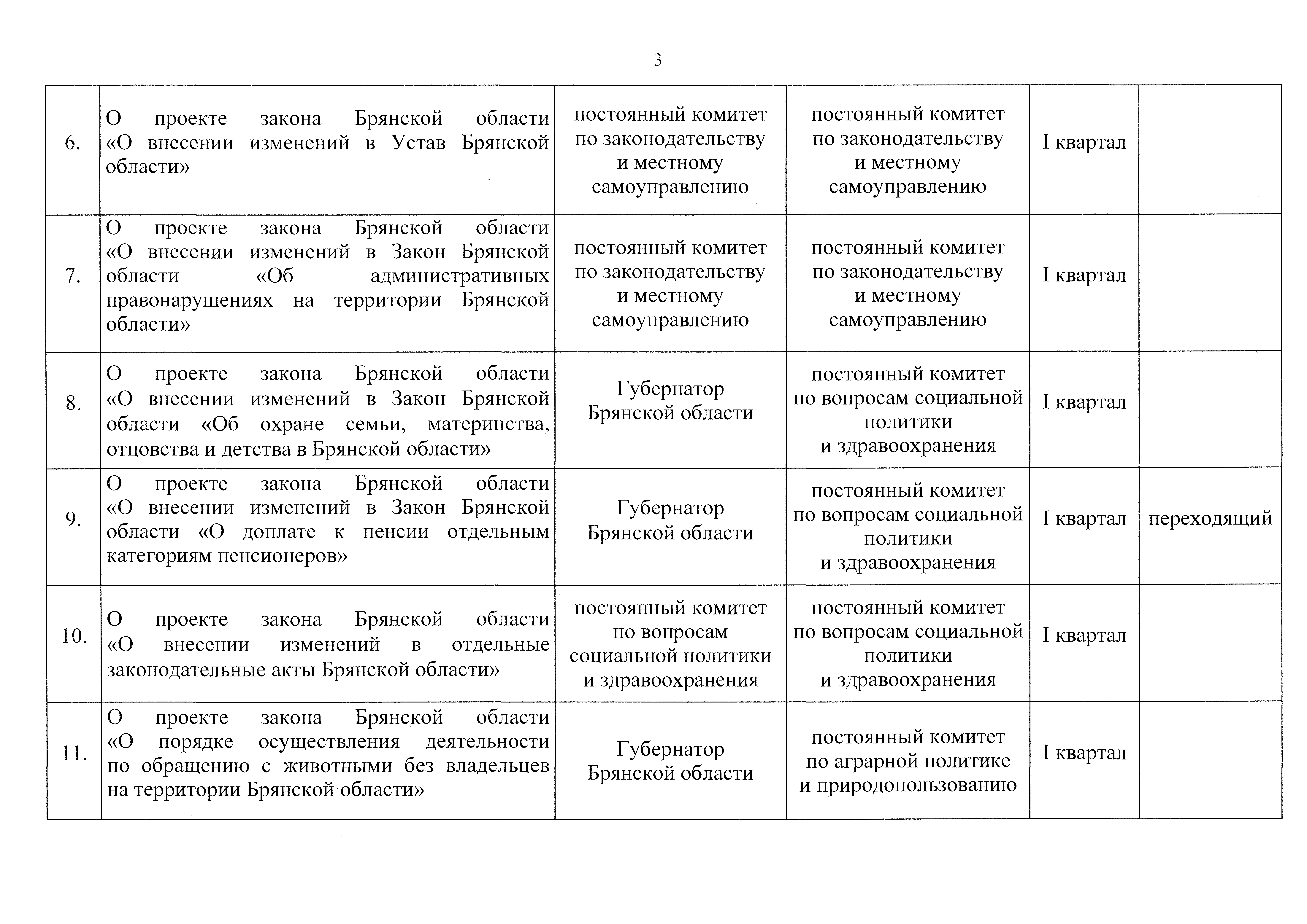"О плане законотворческой деятельности Брянской областной Думы на первое полугодие 2025 года"