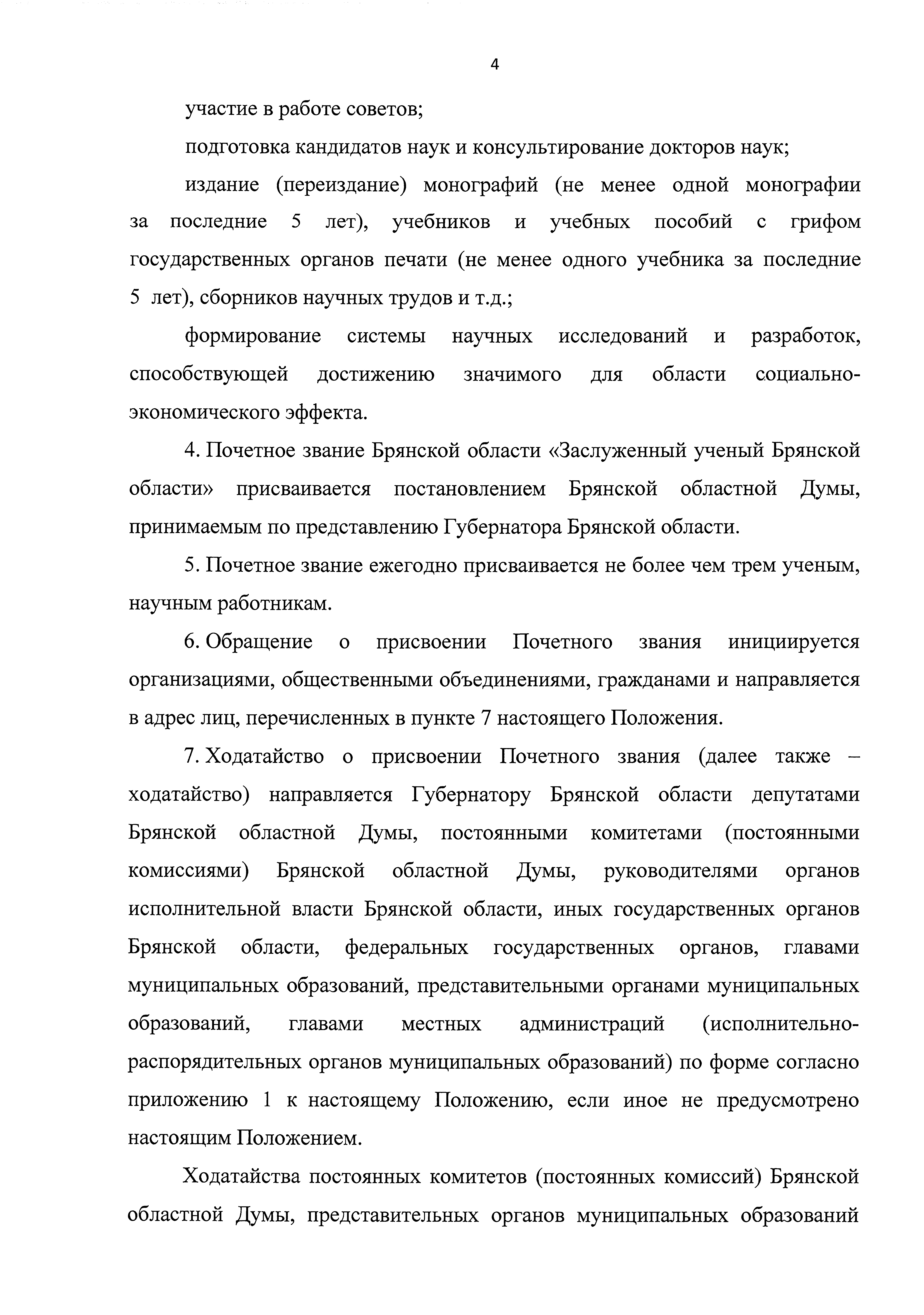 "О внесении изменений в постановление Брянской областной Думы от 19.12.2007 №4-1600 "Об учреждении почетного звания "Заслуженный ученый Брянской области"
