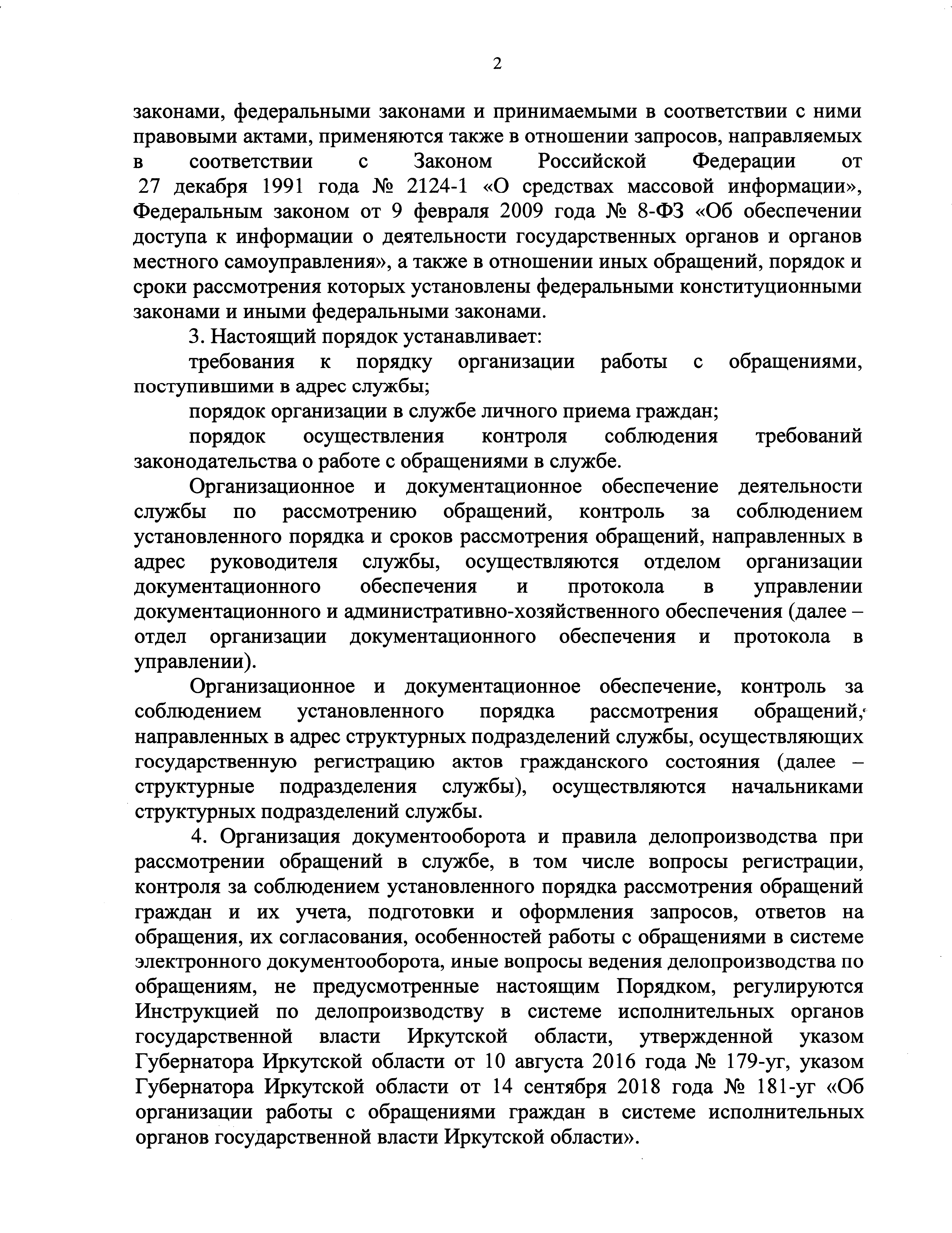"Об утверждении Порядка организации работы с обращениями граждан в службе записи актов гражданского состояния Иркутской области"