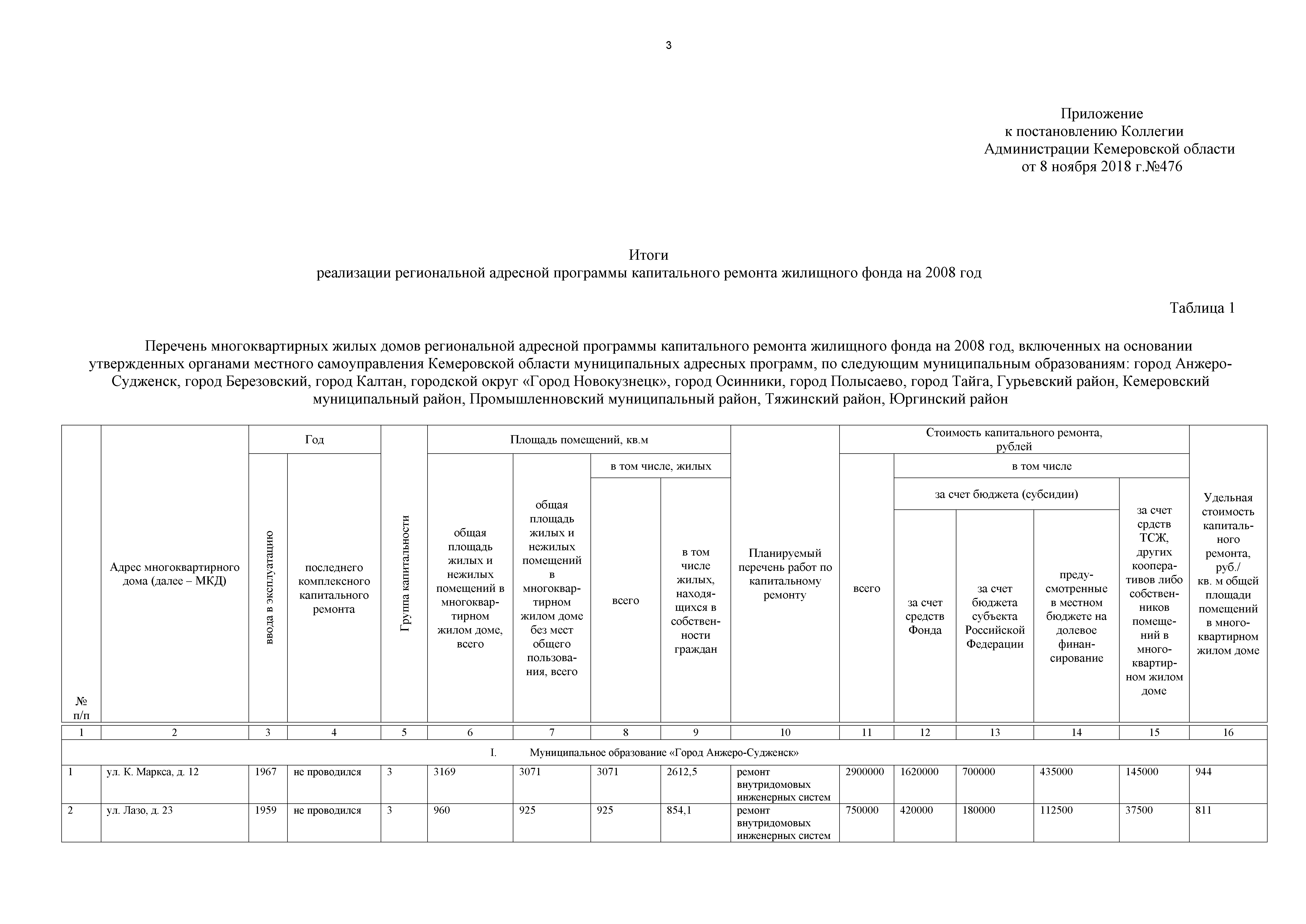 "О внесении изменений в постановление Коллегии Администрации Кемеровской области от 09.10.2017 № 524 "Об итогах реализации региональной адресной программы капитального ремонта жилищного фонда на 2008 год"