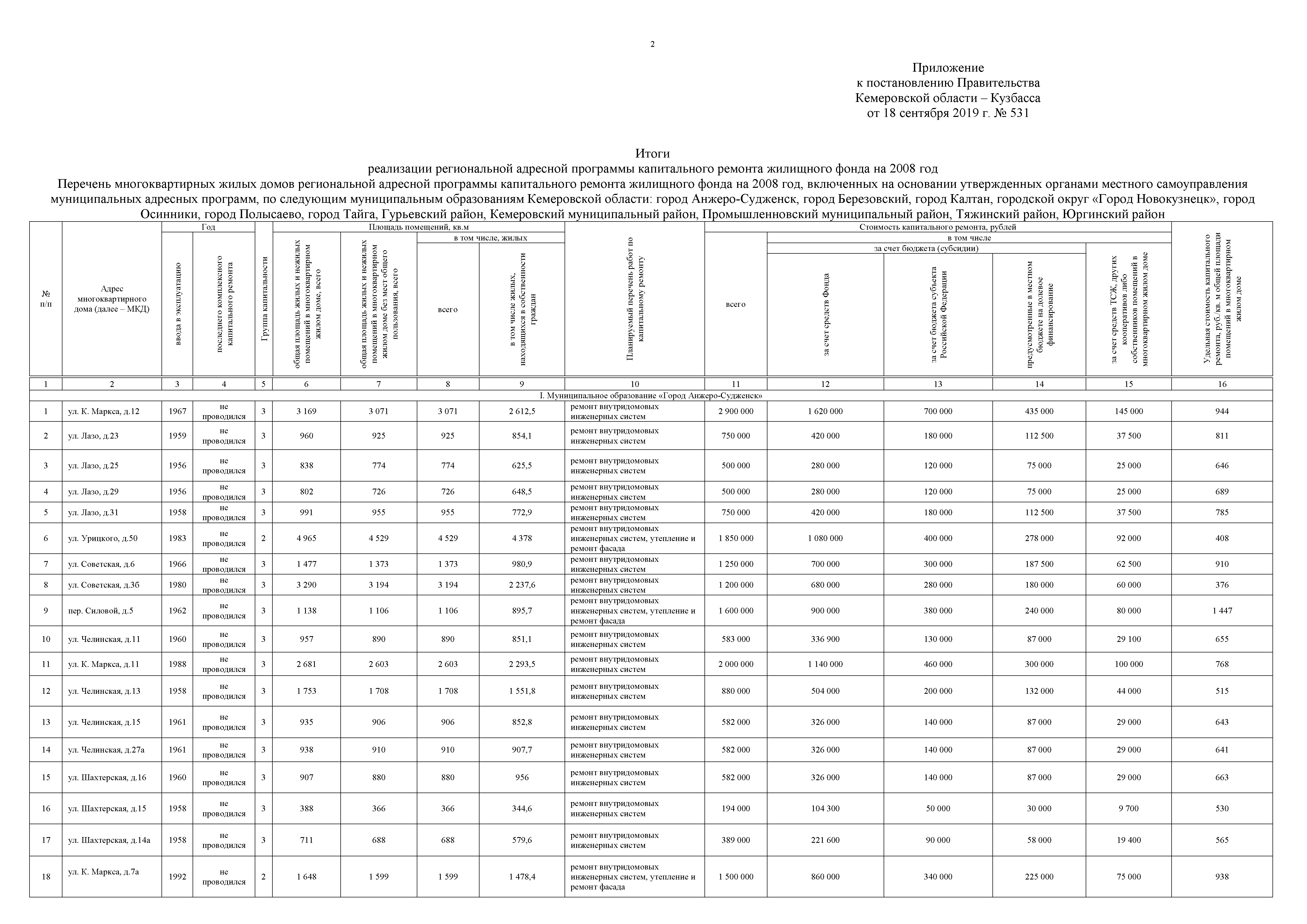 Постановление Правительства Кемеровской области - Кузбасса от 18.09.2019 № 531