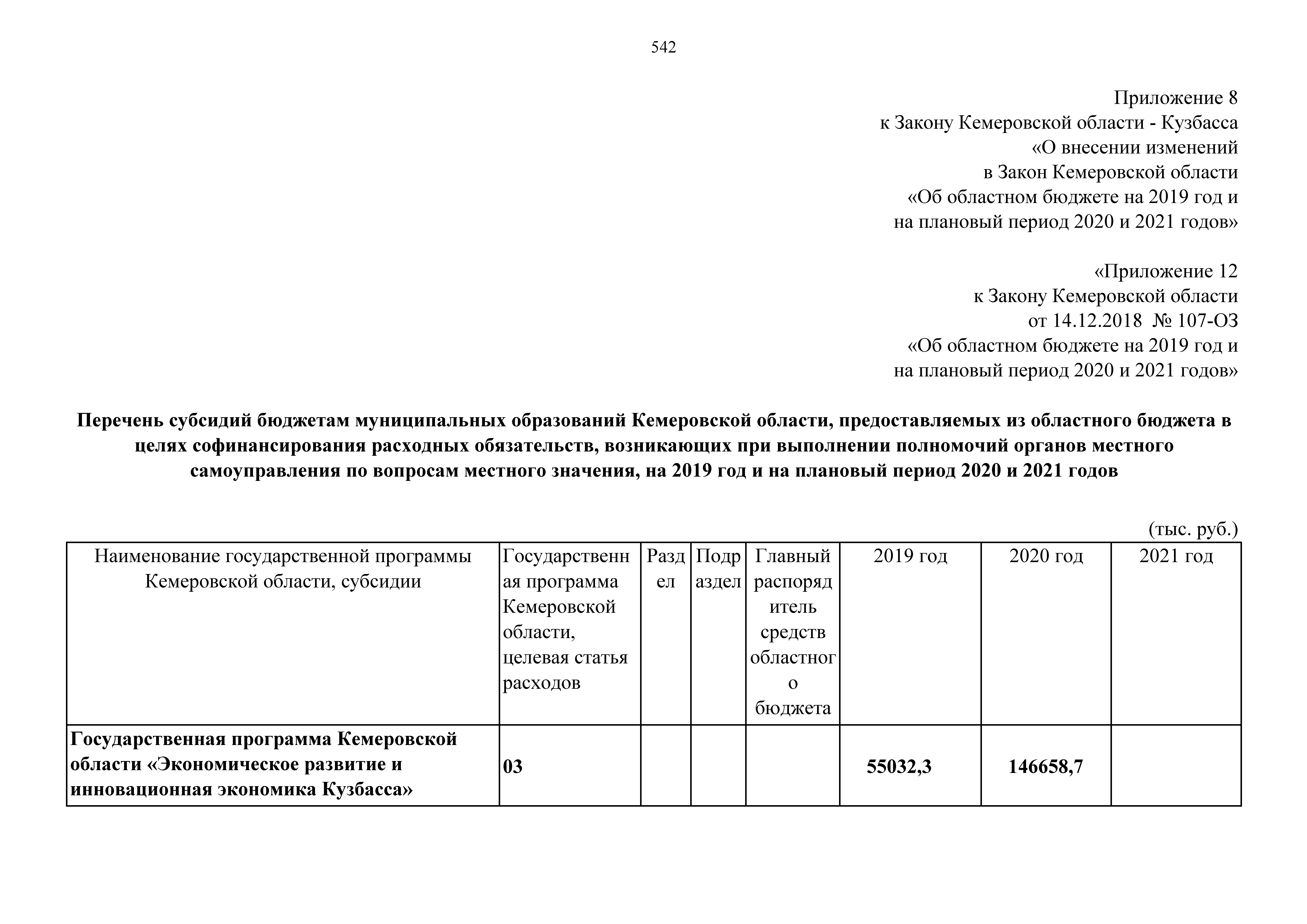 "О внесении изменений в Закон Кемеровской области "Об областном бюджете на 2019 год и на плановый период 2020 и 2021 годов"