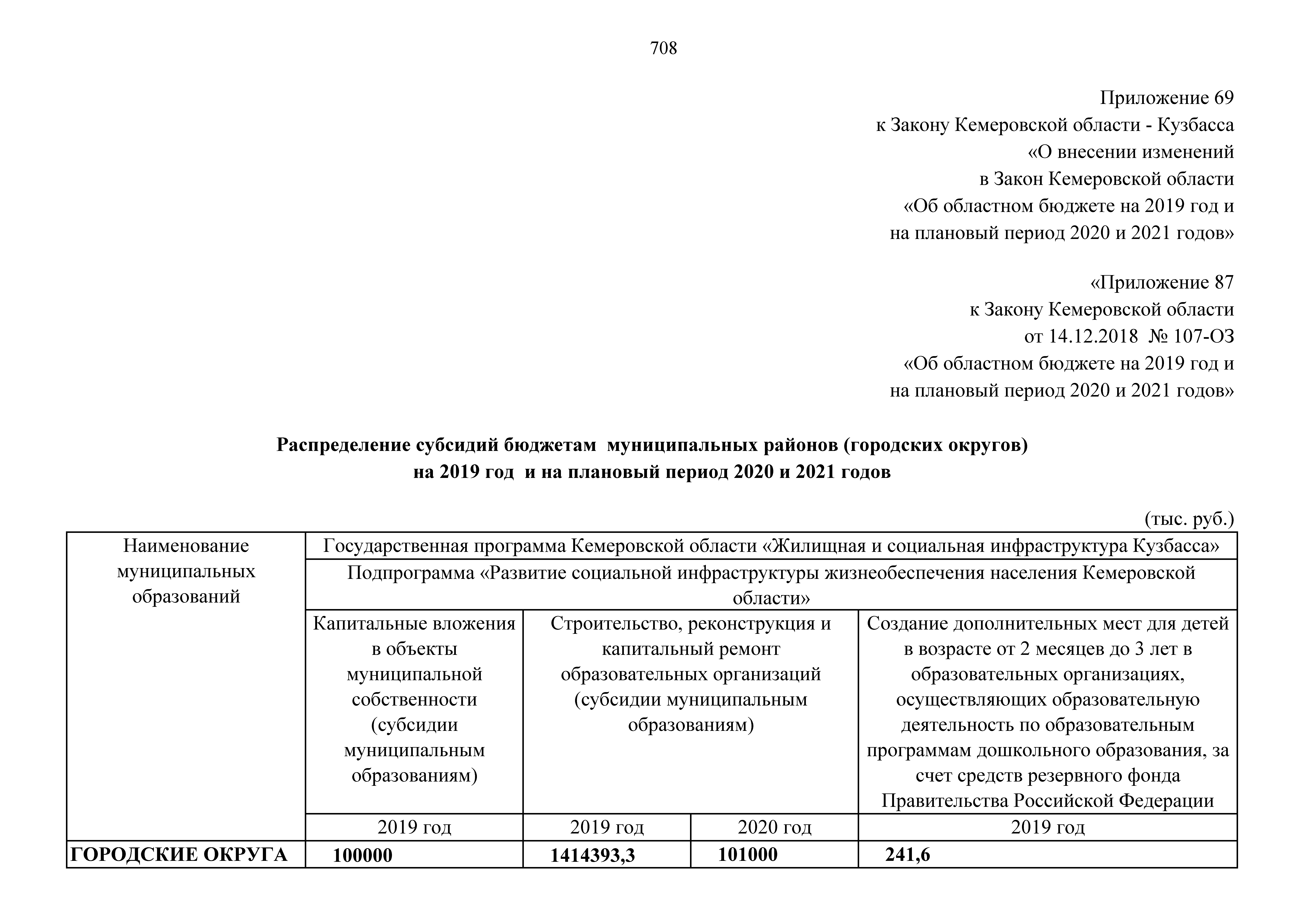 "О внесении изменений в Закон Кемеровской области "Об областном бюджете на 2019 год и на плановый период 2020 и 2021 годов"