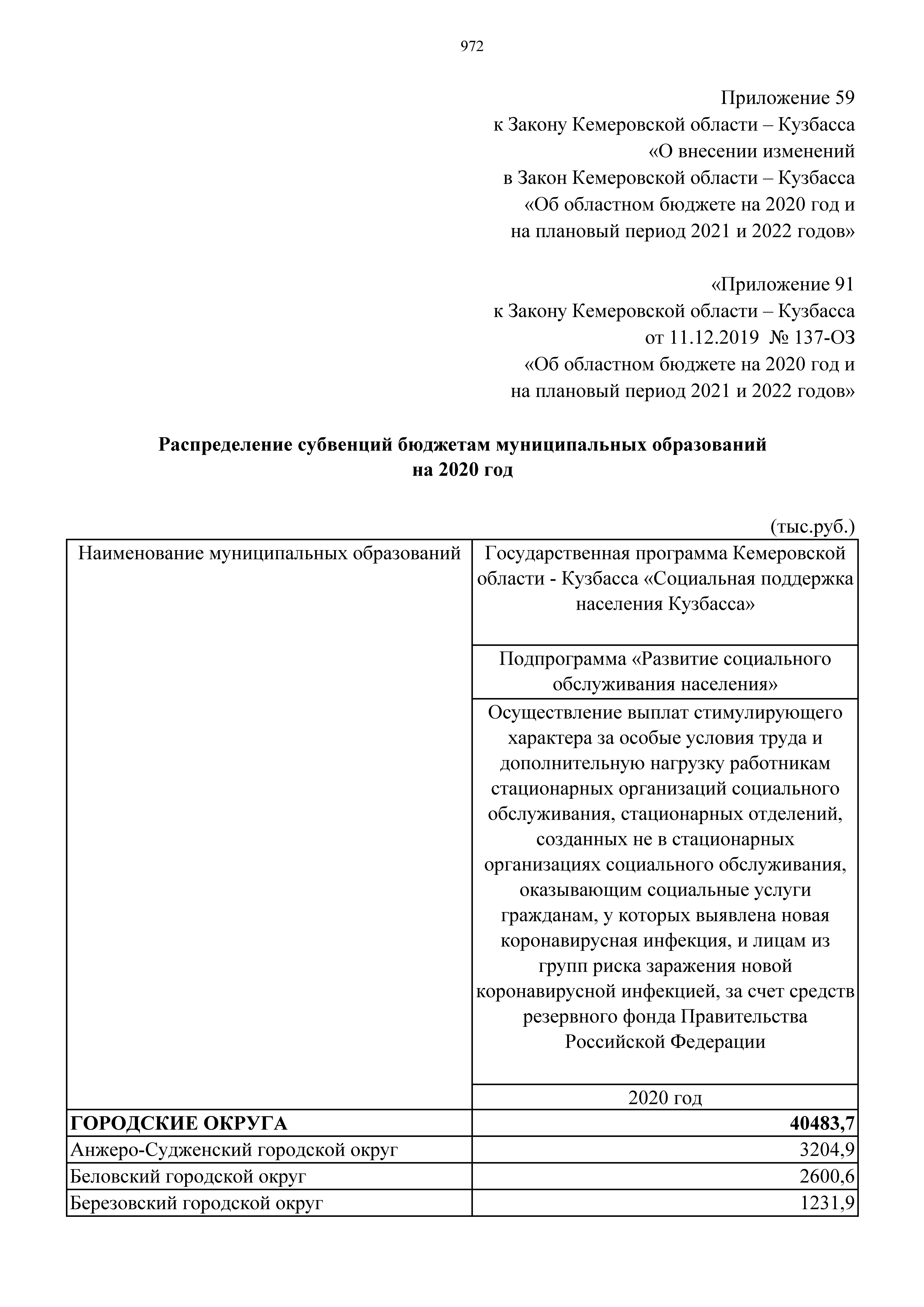 Закон Кемеровской области - Кузбасса от 23.12.2020 № 161-ОЗ "О внесении изменений в Закон Кемеровской области – Кузбасса "Об областном бюджете на 2020 год и на плановый период 2021 и 2022 годов"