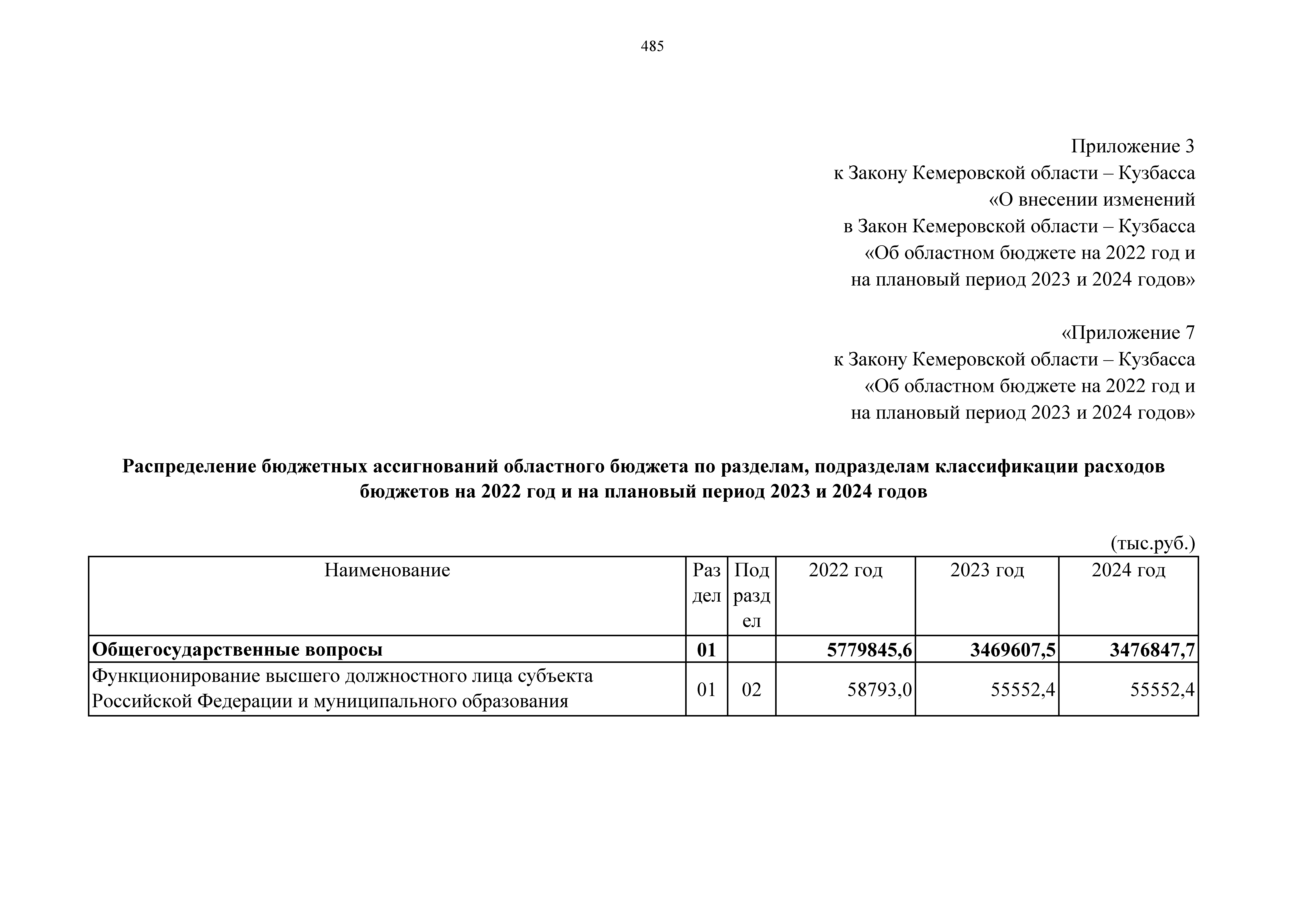 "О внесении изменений в Закон Кемеровской области – Кузбасса "Об областном бюджете на 2022 год и на плановый период 2023 и 2024 годов"