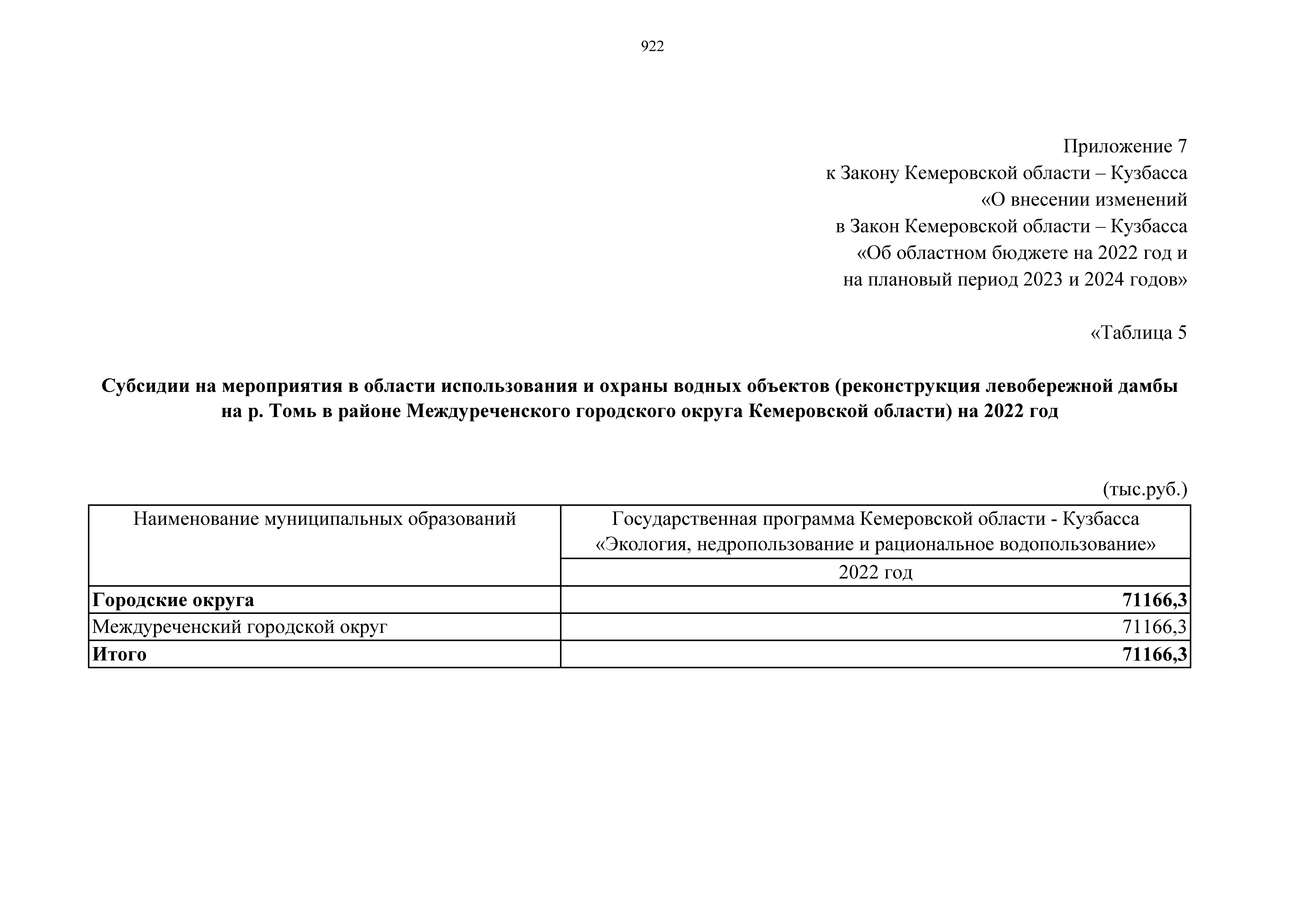 "О внесении изменений в Закон Кемеровской области – Кузбасса "Об областном бюджете на 2022 год и на плановый период 2023 и 2024 годов"