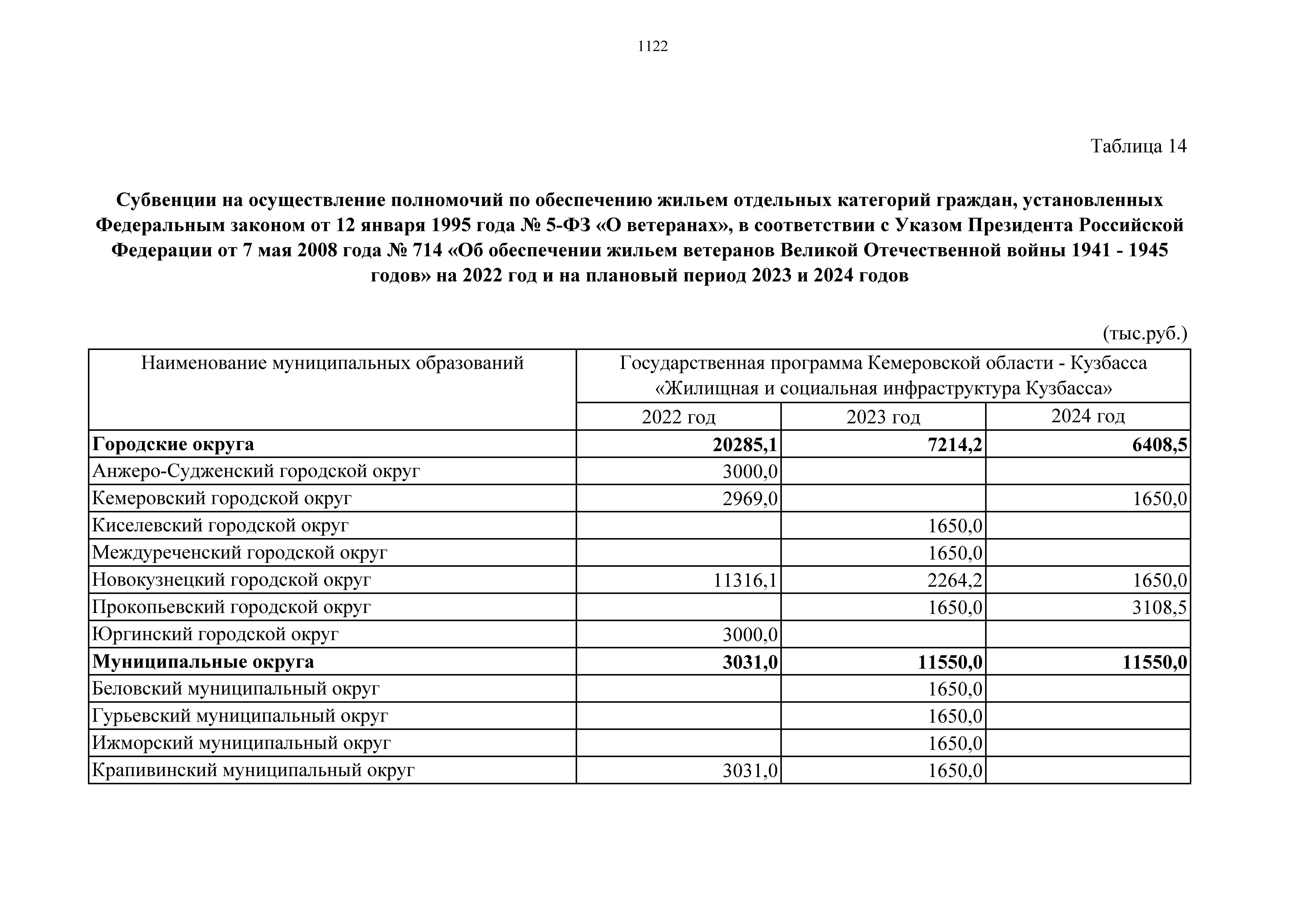 "О внесении изменений в Закон Кемеровской области – Кузбасса "Об областном бюджете на 2022 год и на плановый период 2023 и 2024 годов"