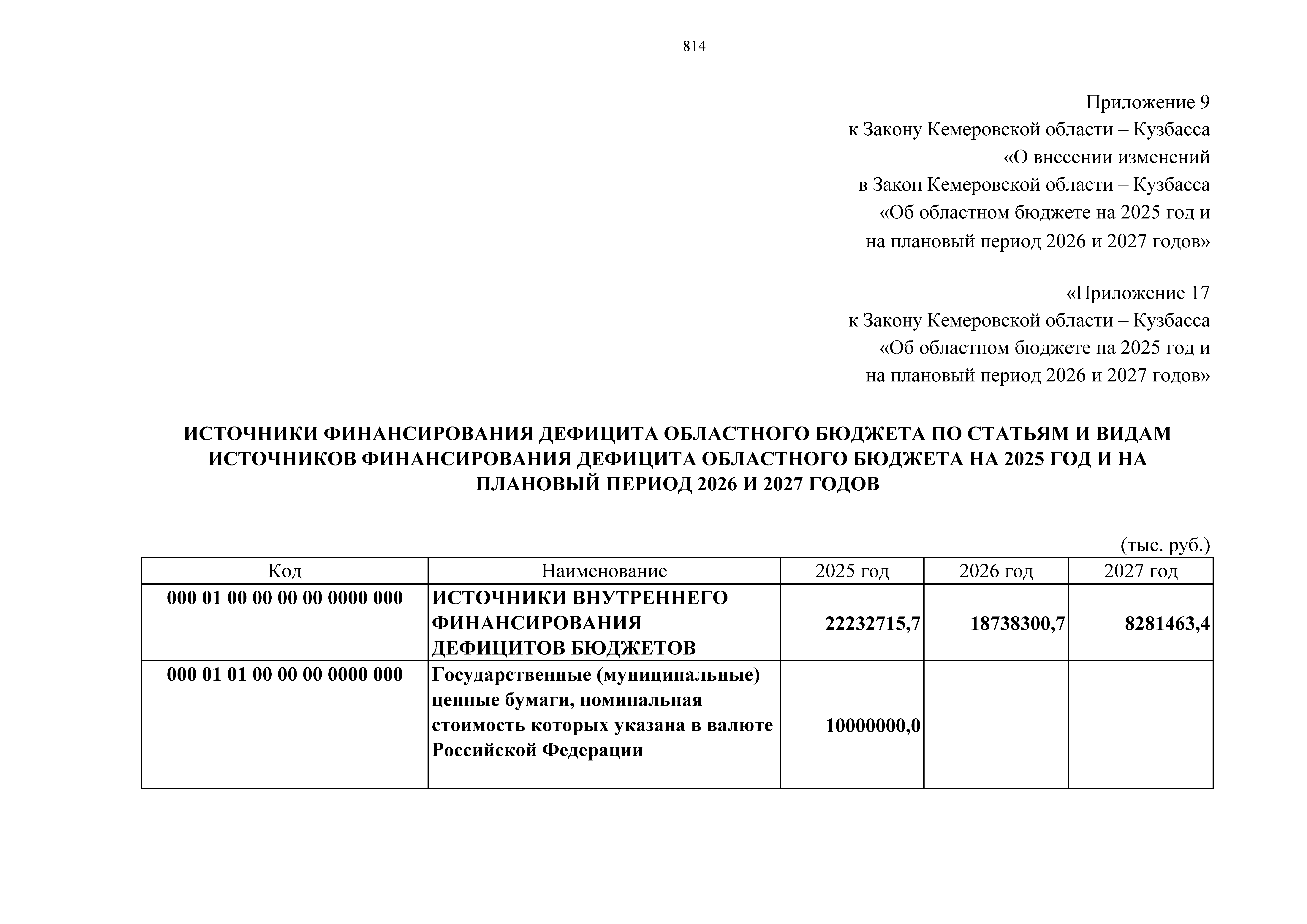 "О внесении изменений в Закон Кемеровской области – Кузбасса "Об областном бюджете на 2025 год и на плановый период 2026 и 2027 годов"