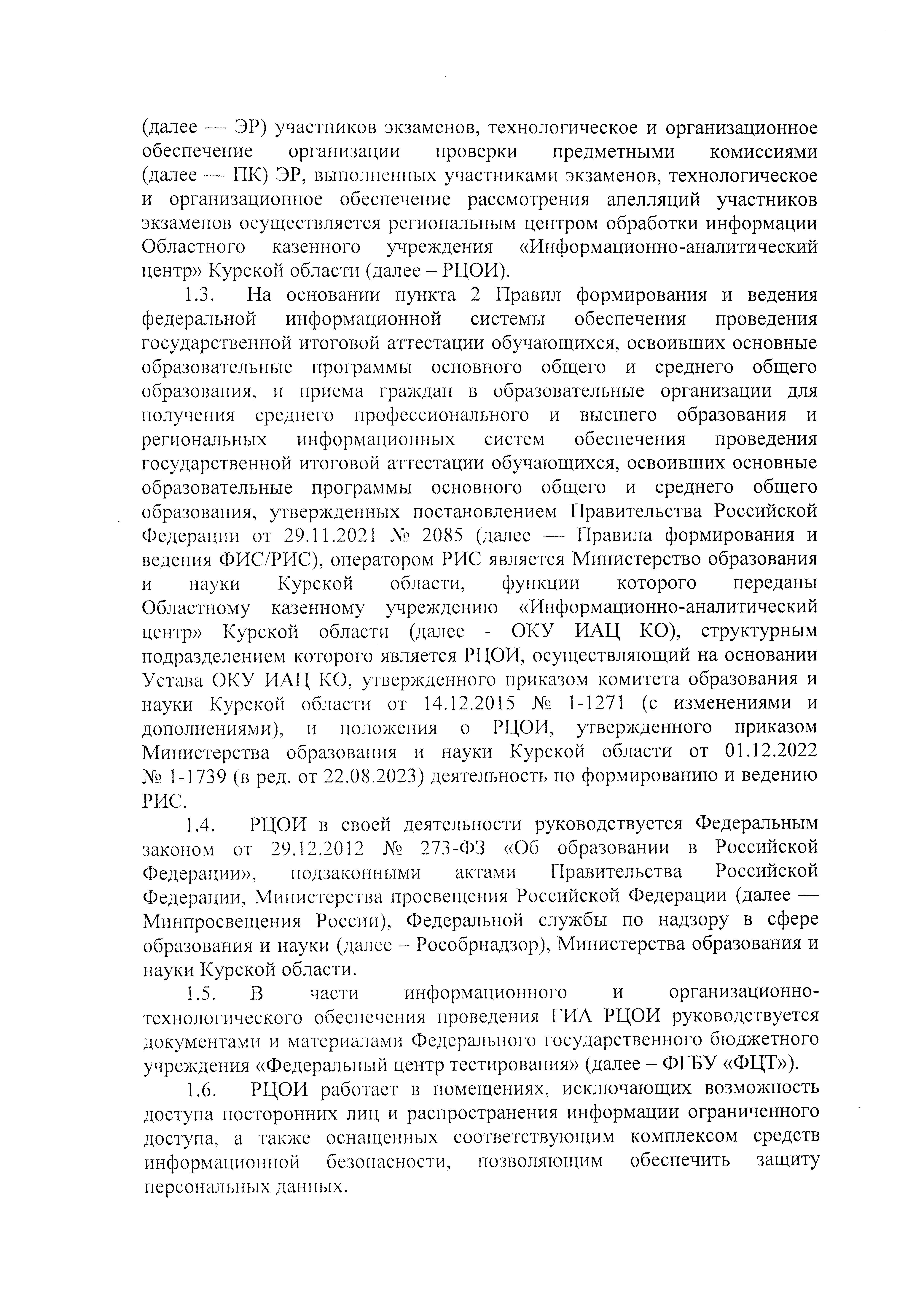 "Об утверждении Положения по подготовке, проведению и обработке материалов государственной итоговой аттестации по образовательным программам основного общего и среднего общего образования в региональном центре обработки информации Областного казенного учреждения "Информационно-аналитический центр" Курской области в 2026 году"
