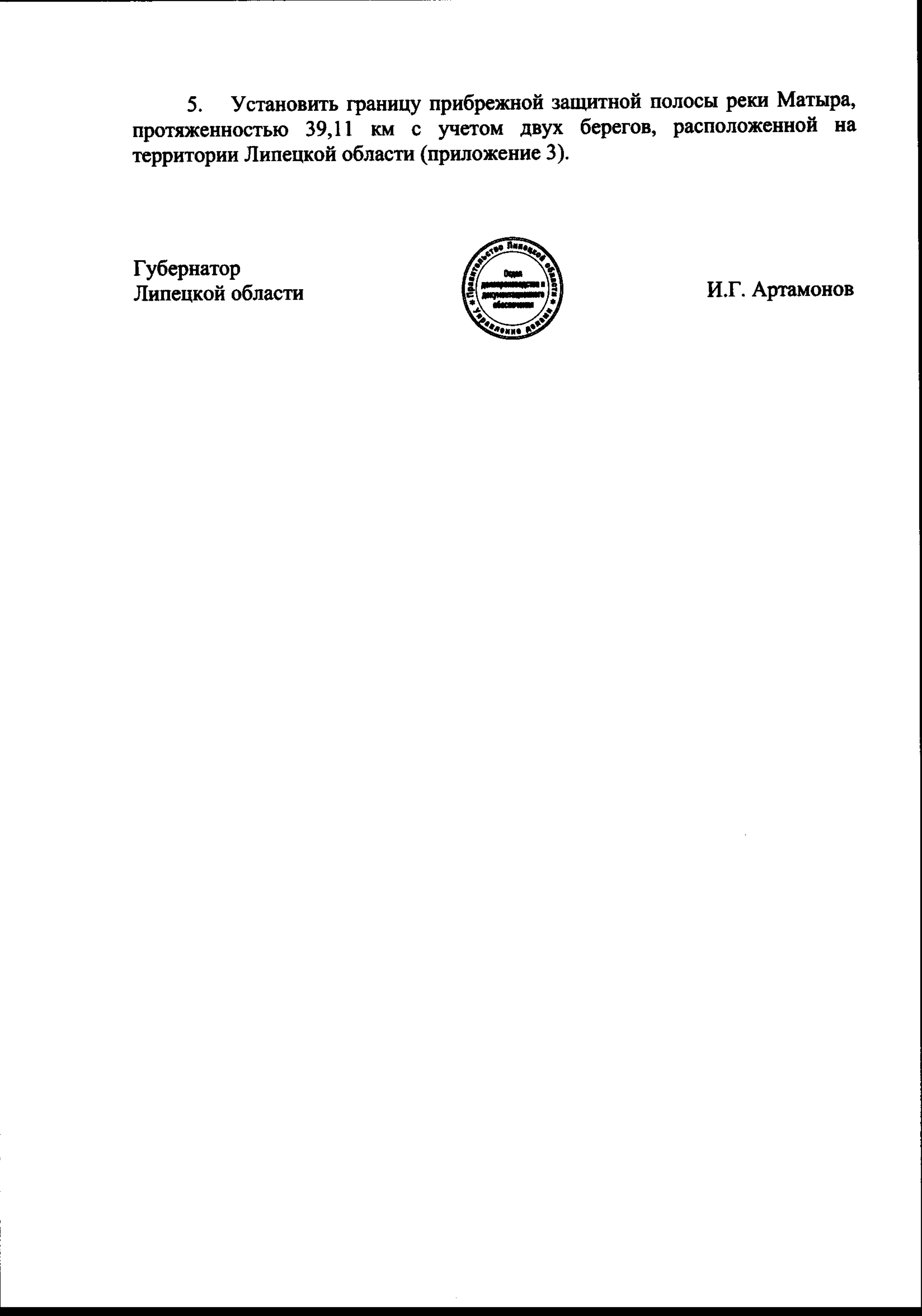 "Об установлении местоположения береговой линии (границы водного объекта), границы водоохранных зон и границы прибрежных защитных полос реки Матыра"