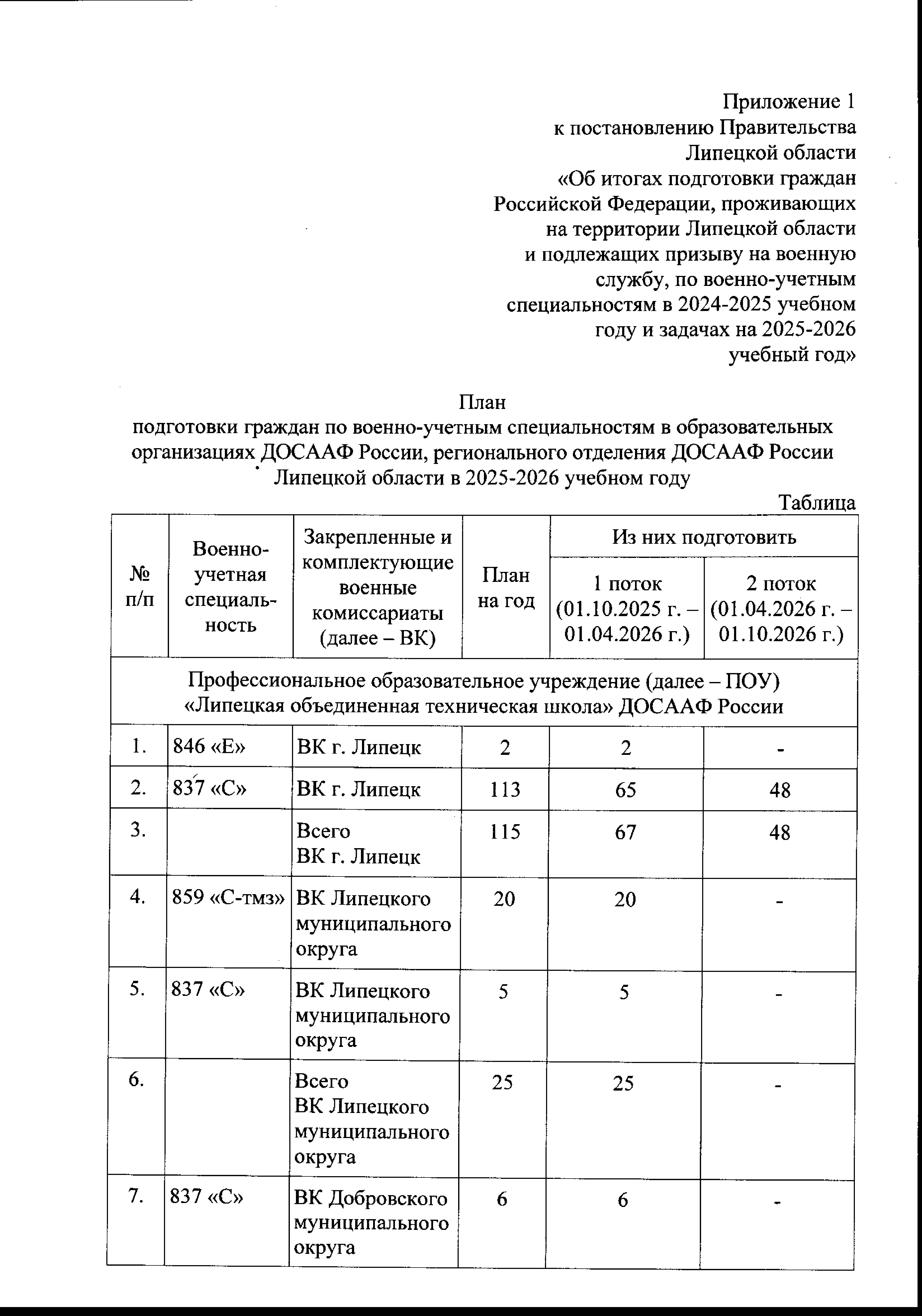 "Об итогах подготовки граждан Российской Федерации, проживающих на территории Липецкой области и подлежащих призыву на военную службу, по военно-учетным специальностям в 2024-2025 учебном году и задачах на 2025-2026 учебный год"