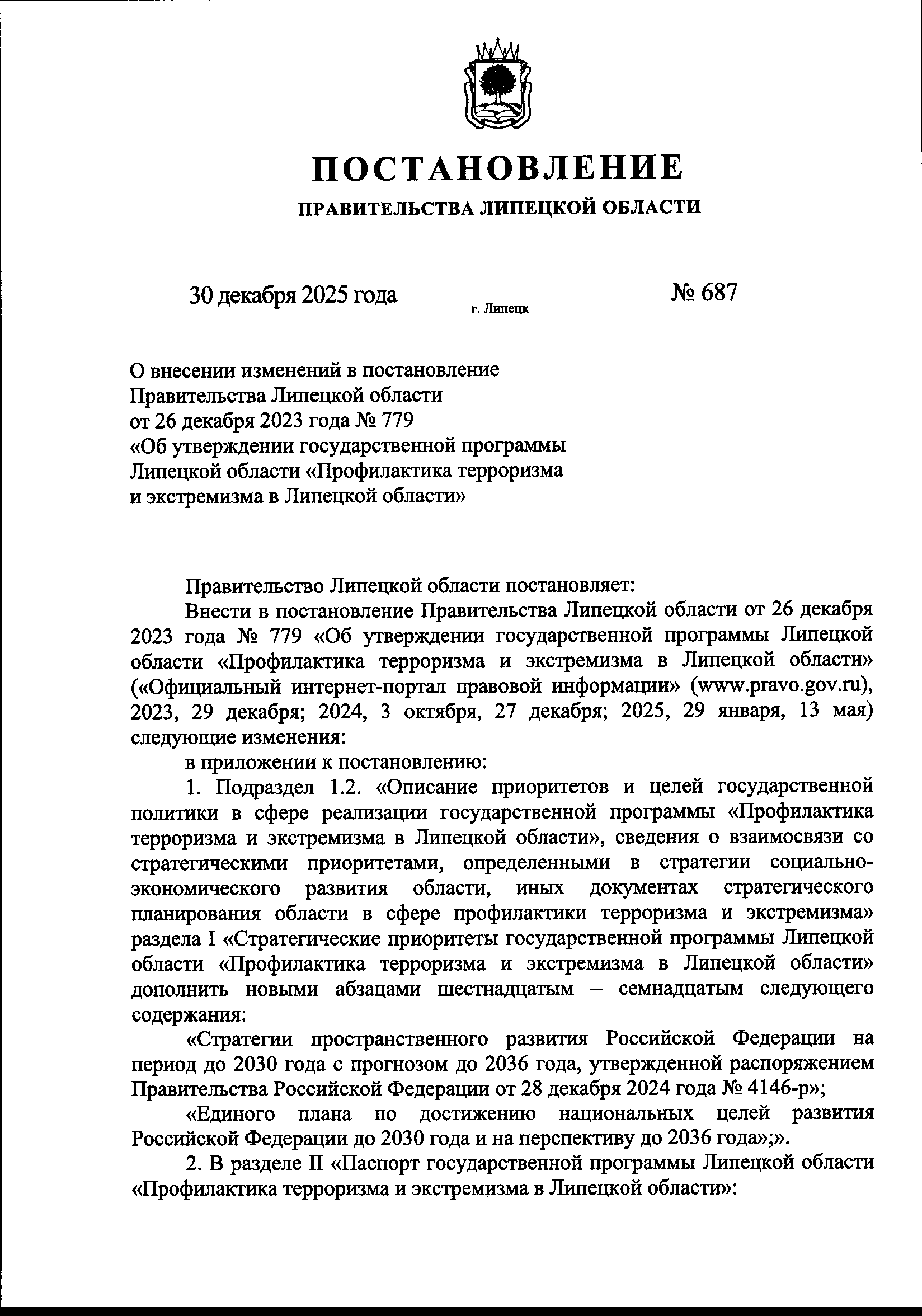 Постановление Правительства Липецкой области от 30.12.2025 № 687