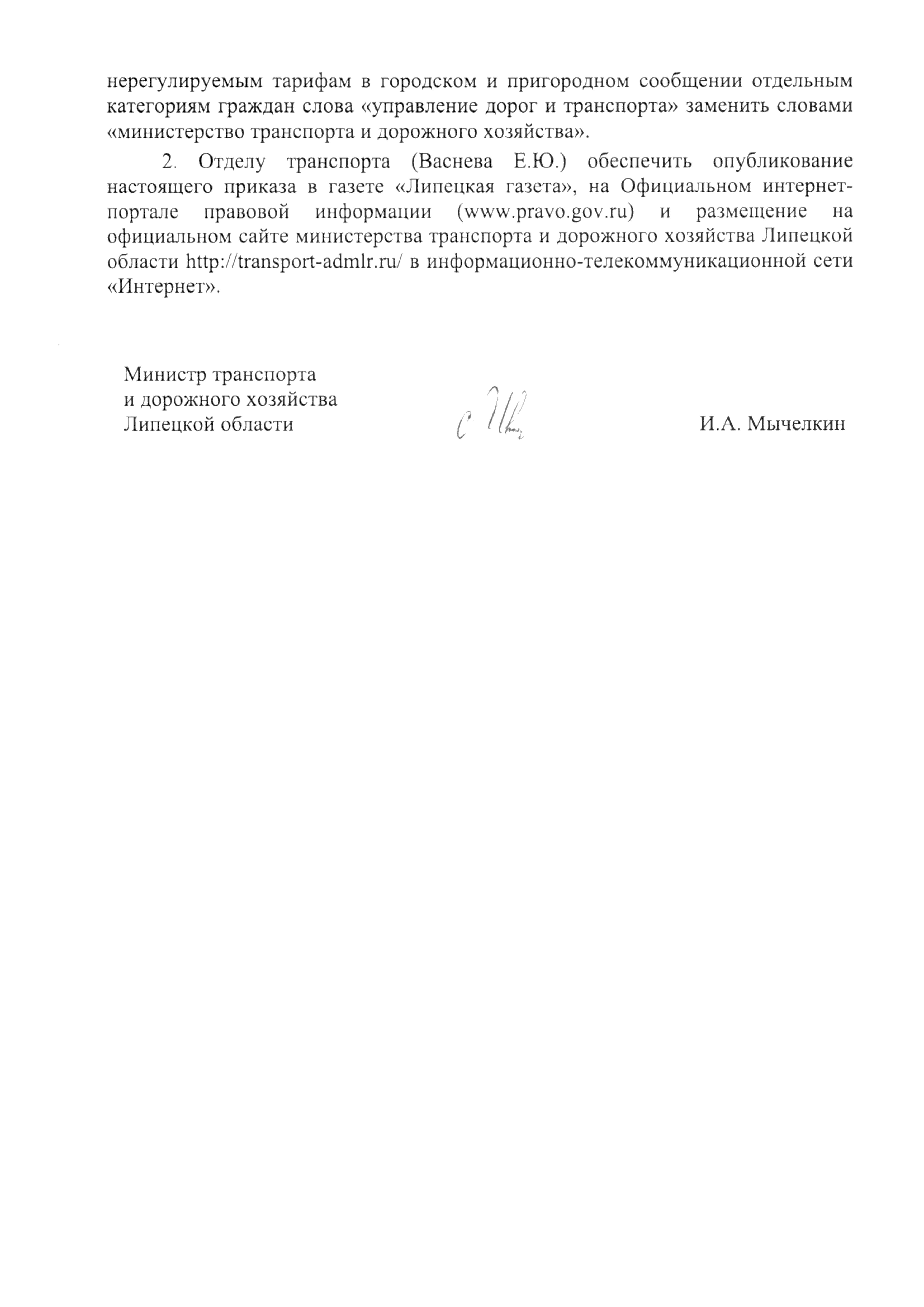 Приказ министерства транспорта и дорожного хозяйства Липецкой области от 15.04.2025 № 135