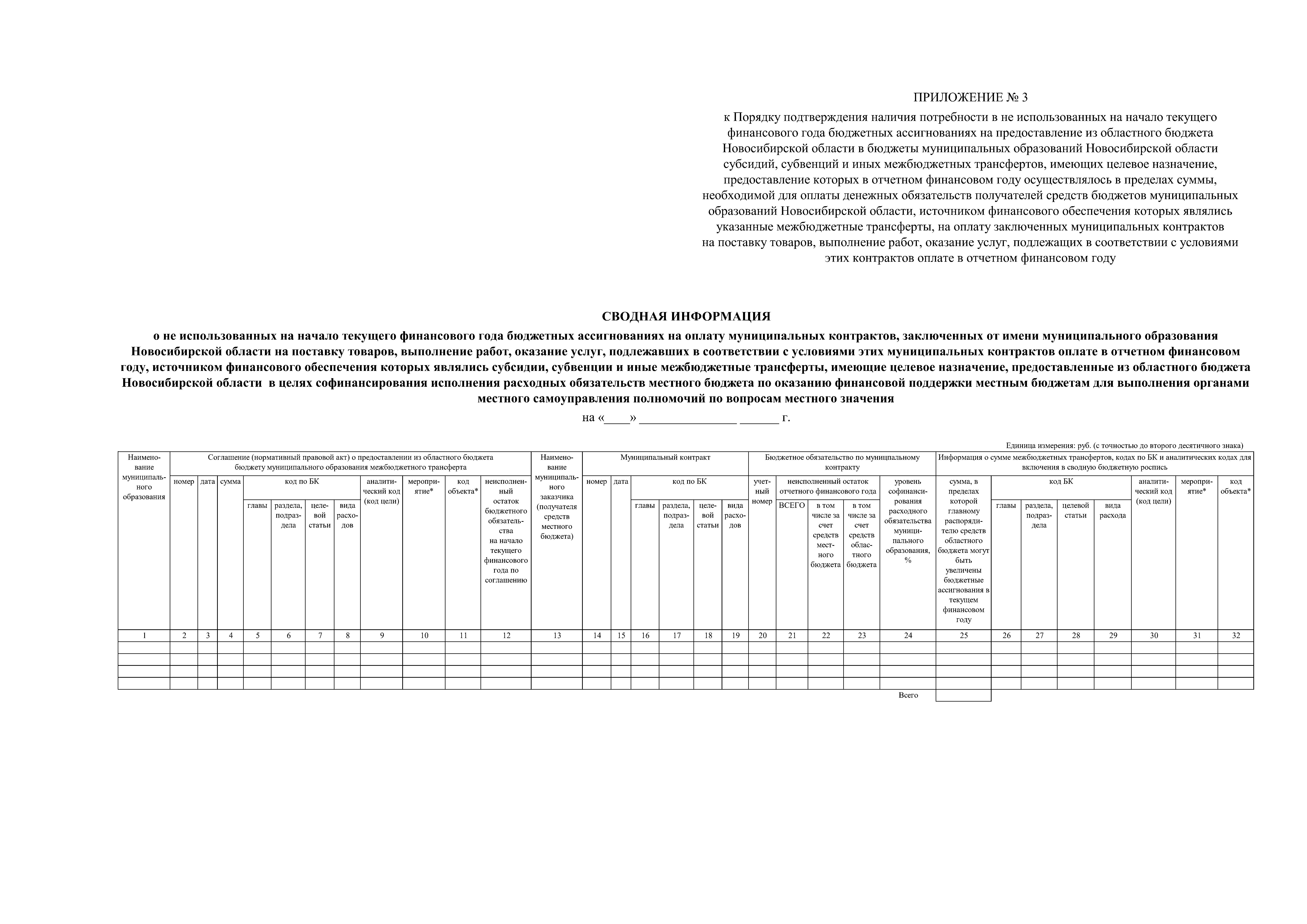 "Об установлении Порядка подтверждения наличия потребности в не использованных на начало текущего финансового года бюджетных ассигнованиях на предоставление из областного бюджета Новосибирской области в бюджеты муниципальных образований Новосибирской области субсидий, субвенций и иных межбюджетных трансфертов, имеющих целевое назначение, предоставление которых в отчетном финансовом году осуществлялось в пределах суммы, необходимой для оплаты денежных обязательств получателей средств бюджетов муниципальных образований Новосибирской области, источником финансового обеспечения которых являлись указанные межбюджетные трансферты, на оплату заключенных муниципальных контрактов на поставку товаров, выполнение работ, оказание услуг, подлежащих в соответствии с условиями этих контрактов оплате в отчетном финансовом году"