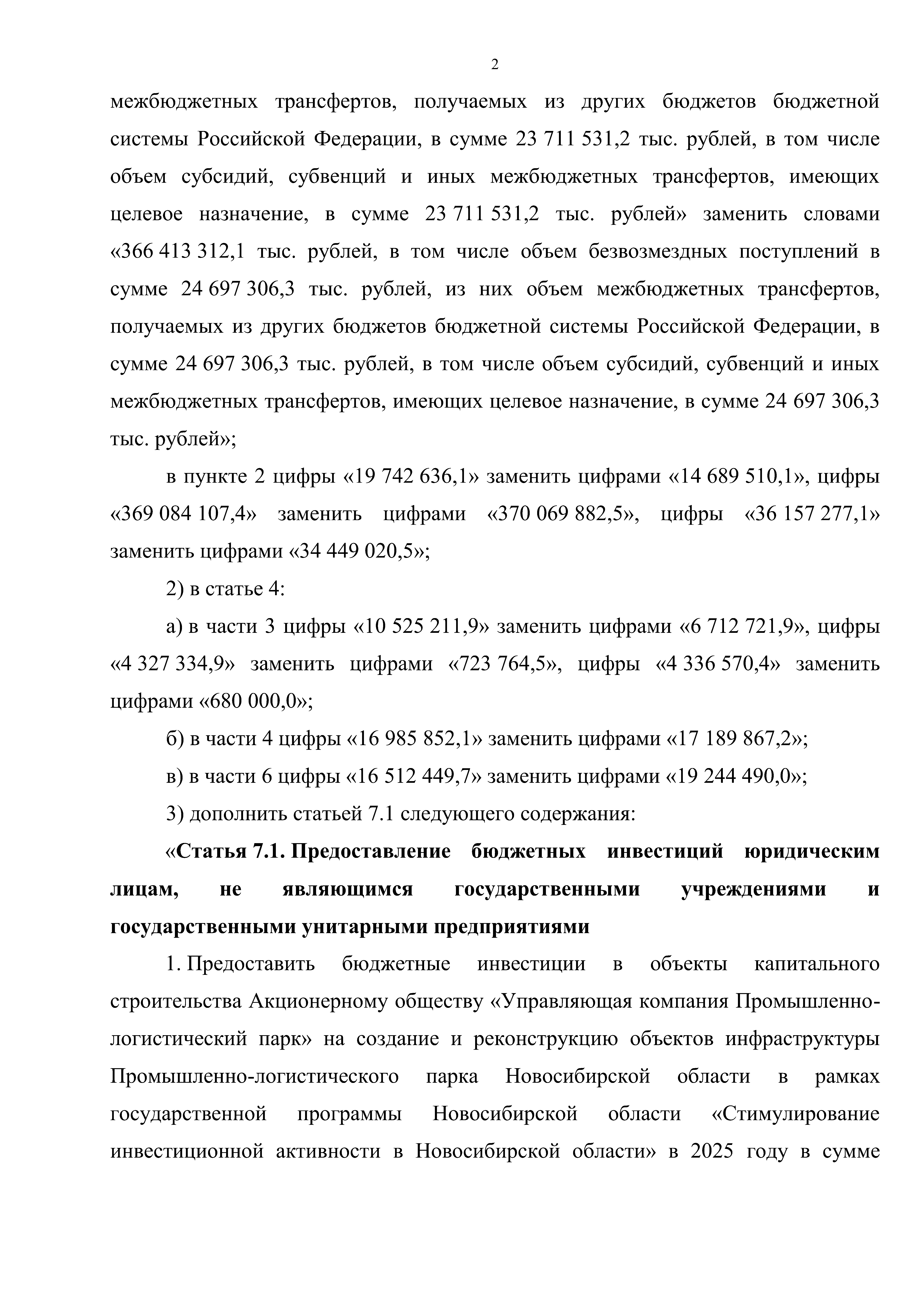 "О внесении изменений в Закон Новосибирской области "Об областном бюджете Новосибирской области на 2025 год и плановый период 2026 и 2027 годов"