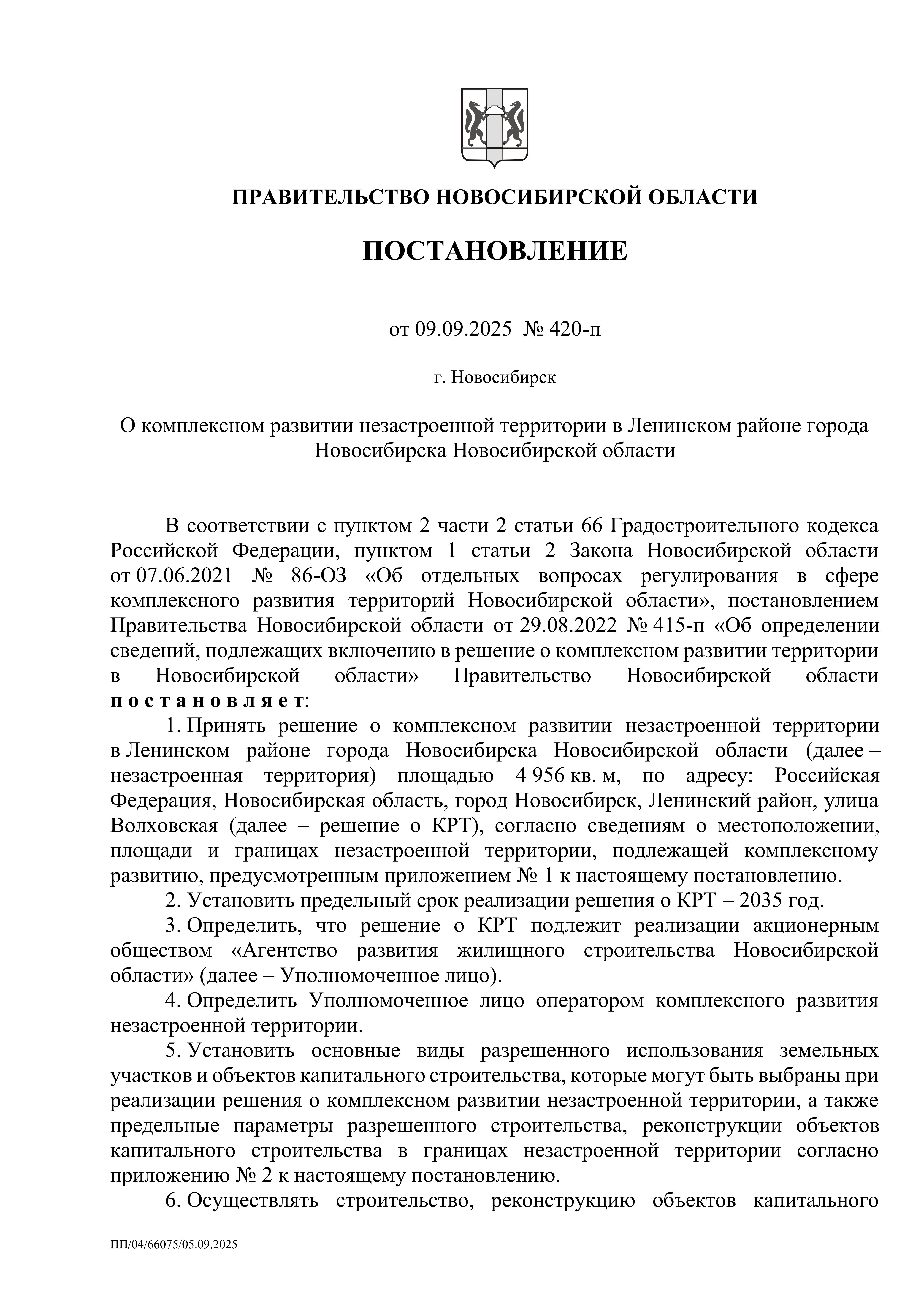 Постановление Правительства Новосибирской области от 09.09.2025 № 420-п