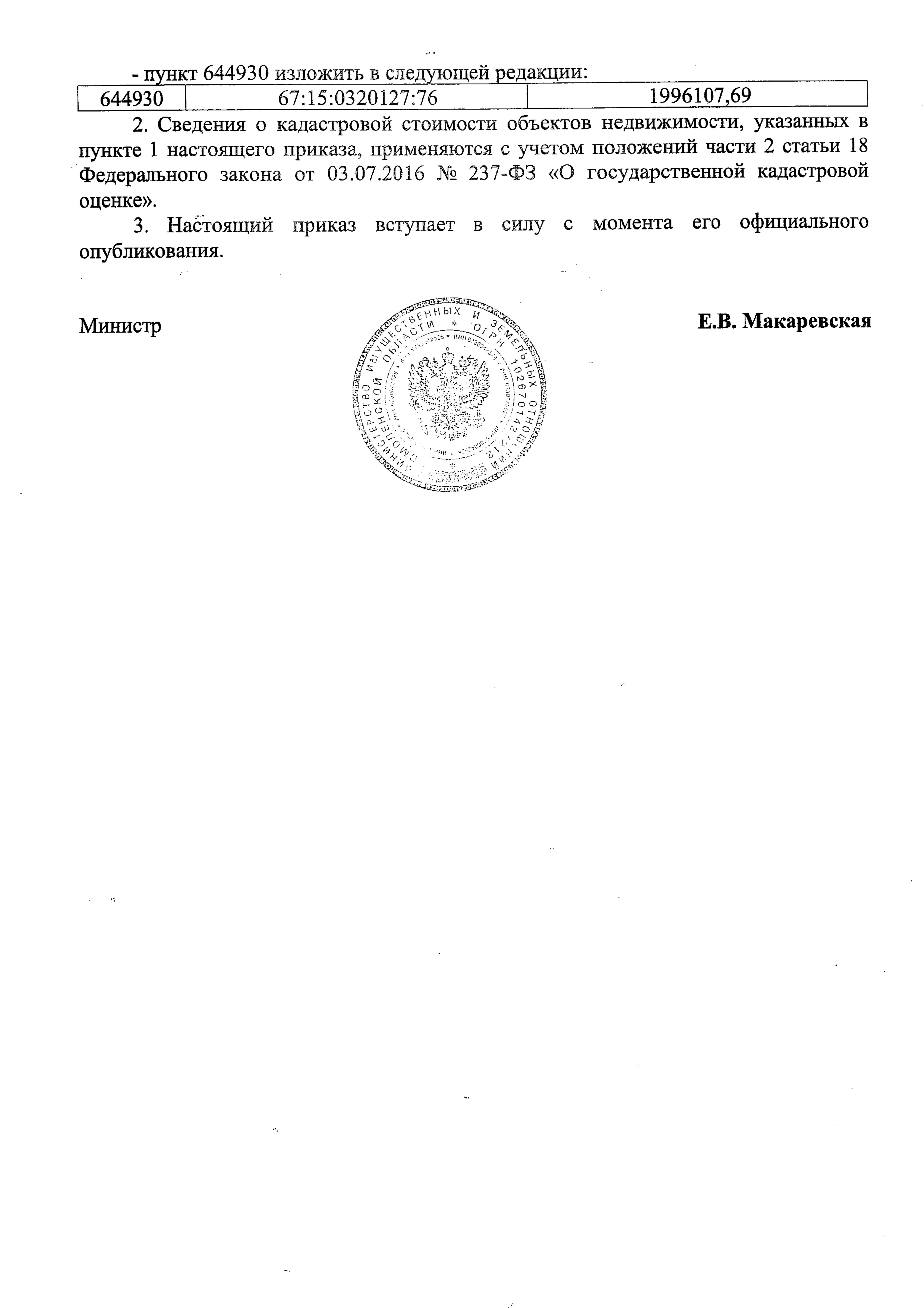 "О внесении изменений в приказ министра имущественных и земельных отношений Смоленской области от 03.11.2023 № 62"