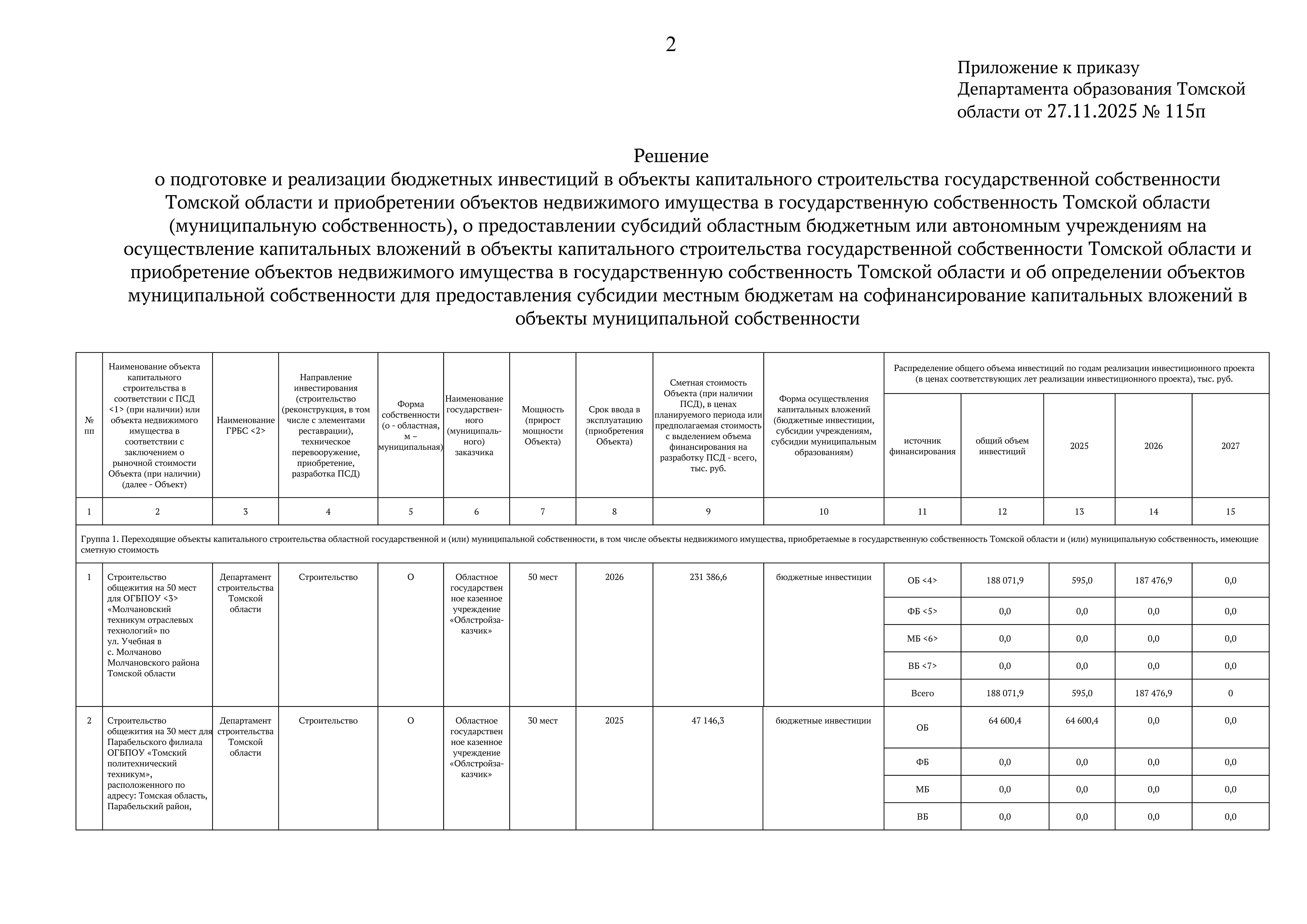 Приказ Департамента образования Томской области от 27.11.2025 № 115п