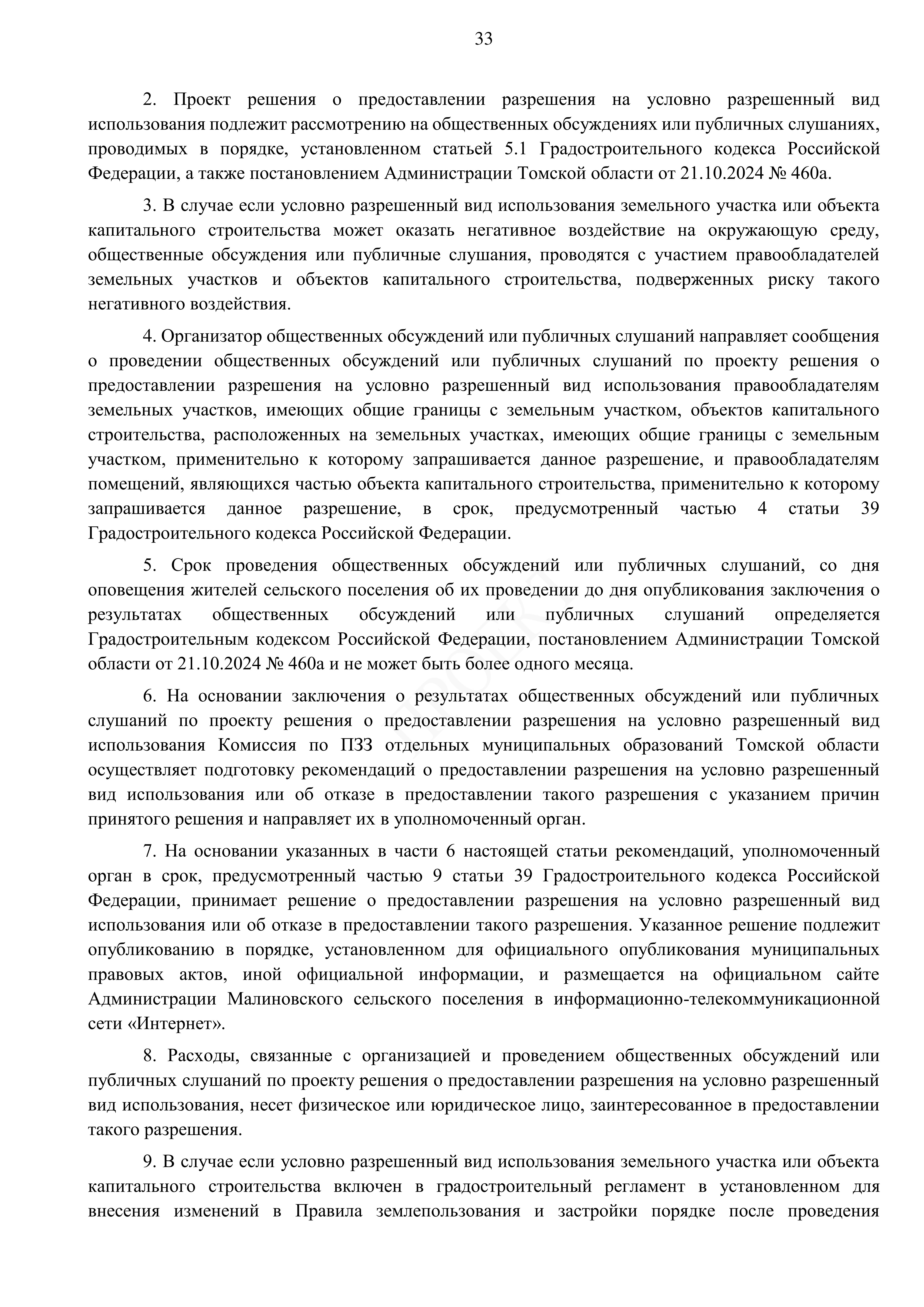"О внесении изменений в Генеральный план и Правила землепользования и застройки муниципального образования "Малиновское сельское поселение Томского муниципального района Томской области"