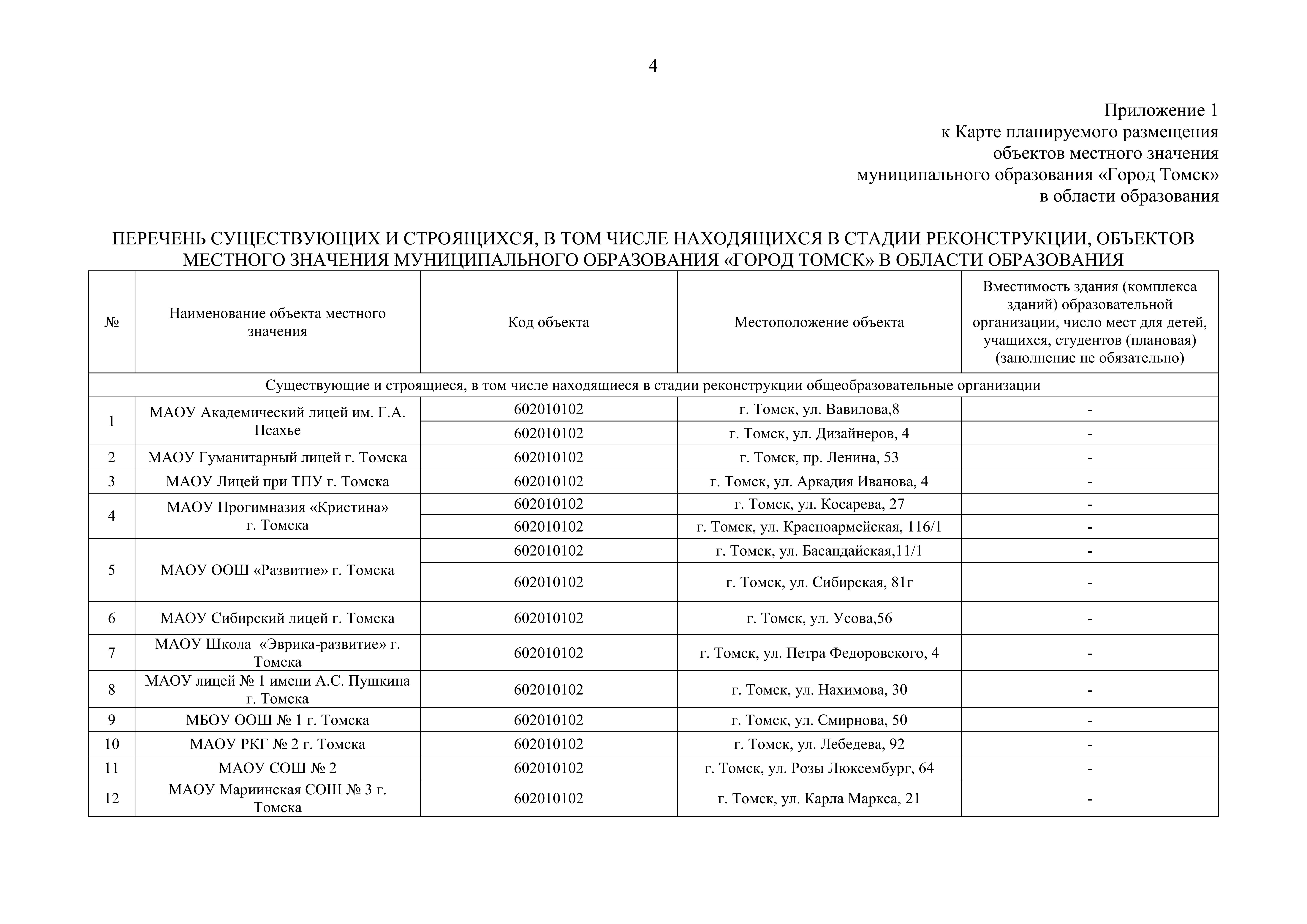 "О внесении изменений в Карту планируемого размещения объектов местного значения муниципального образования "Город Томск" в области образования"