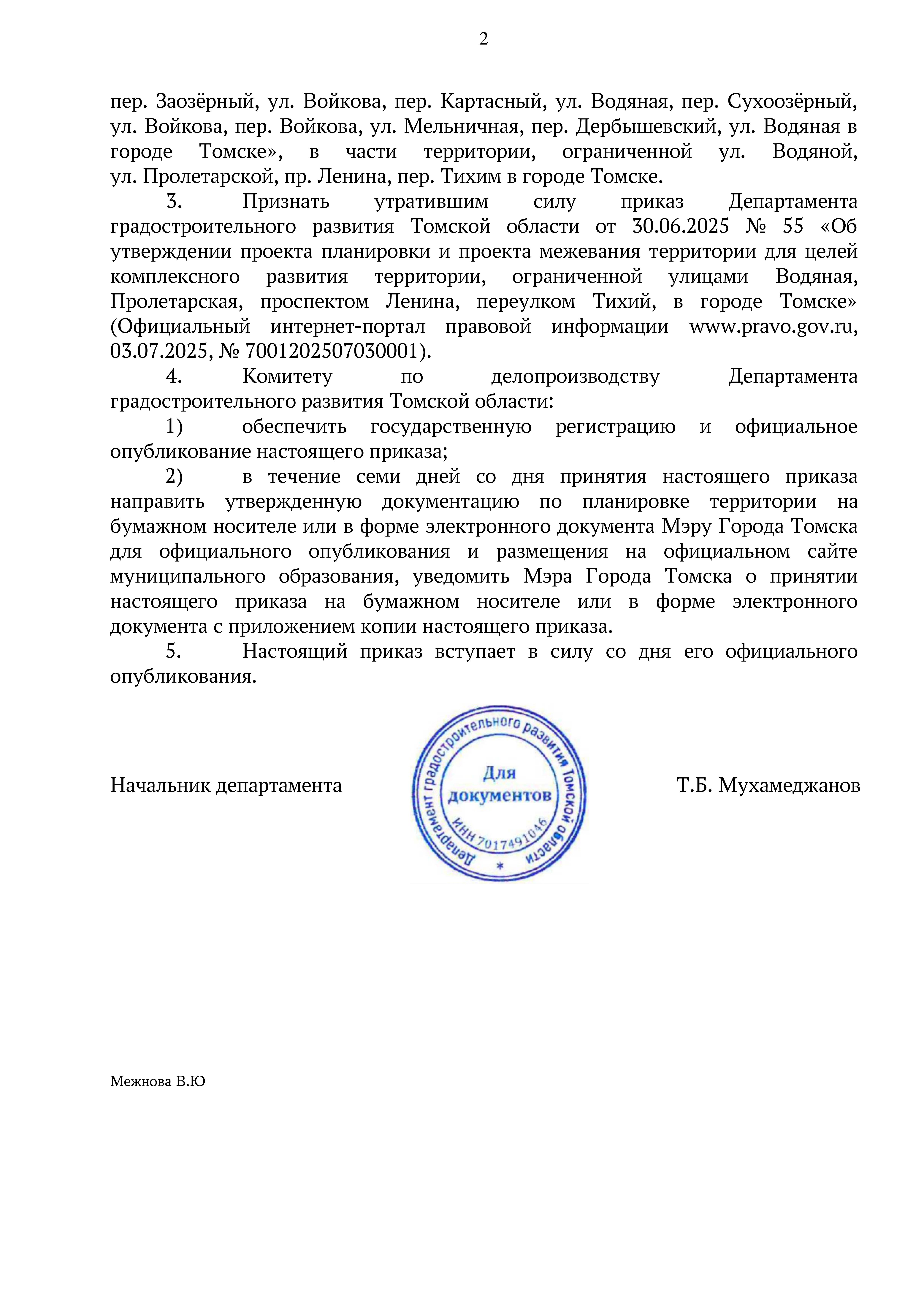 Приказ Департамента градостроительного развития Томской области от 25.12.2025 № 162