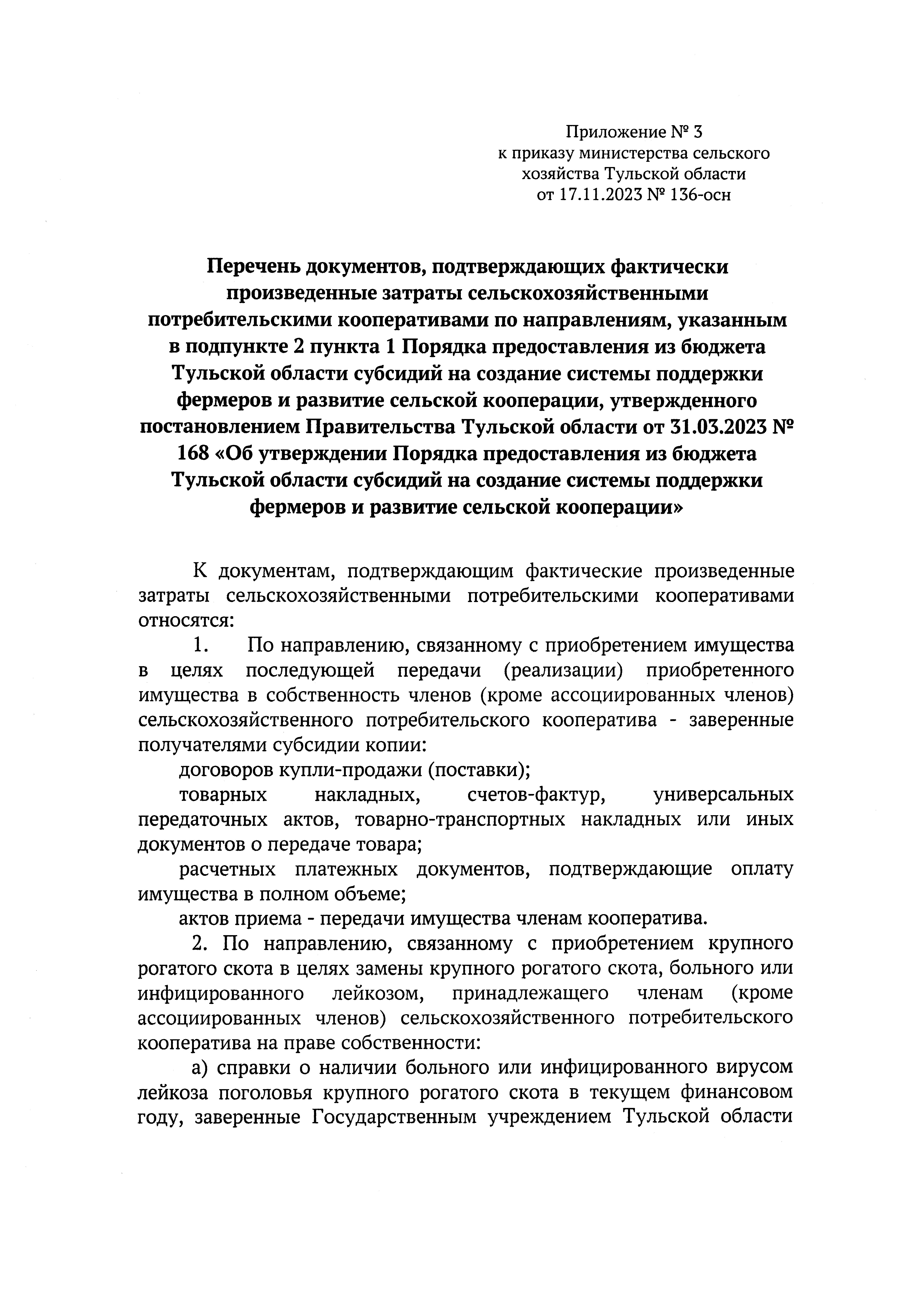 Приказ Министерства сельского хозяйства Тульской области от 17.11.2023 № 136-осн