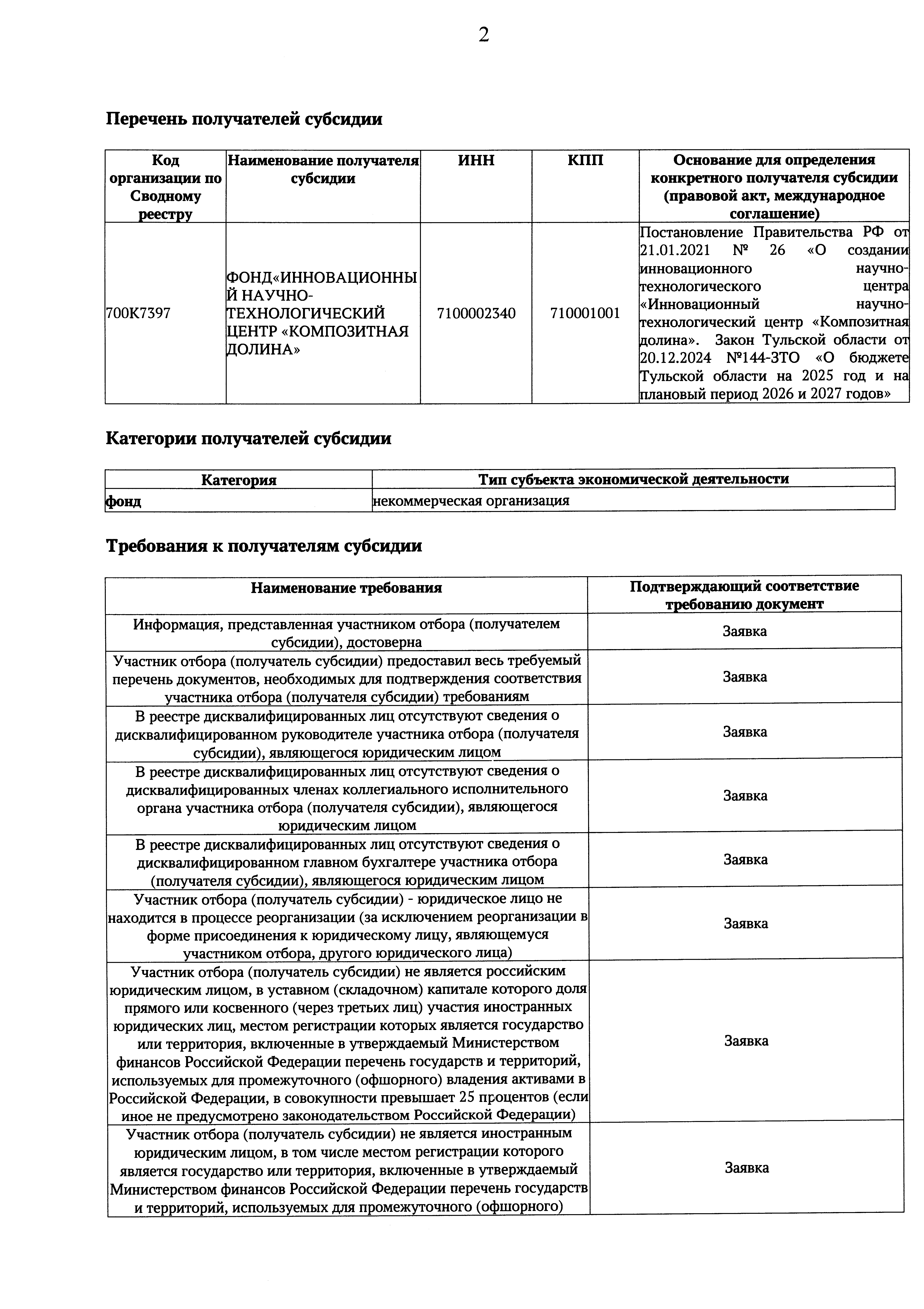 "Об утверждении решения о порядке предоставления субсидии Фонду "Инновационный научно-технологический центр "Композитная долина" в целях реализации мероприятий по созданию инфраструктуры инновационного научно-технологического центра "Инновационный научно-технологический центр "Композитная долина"