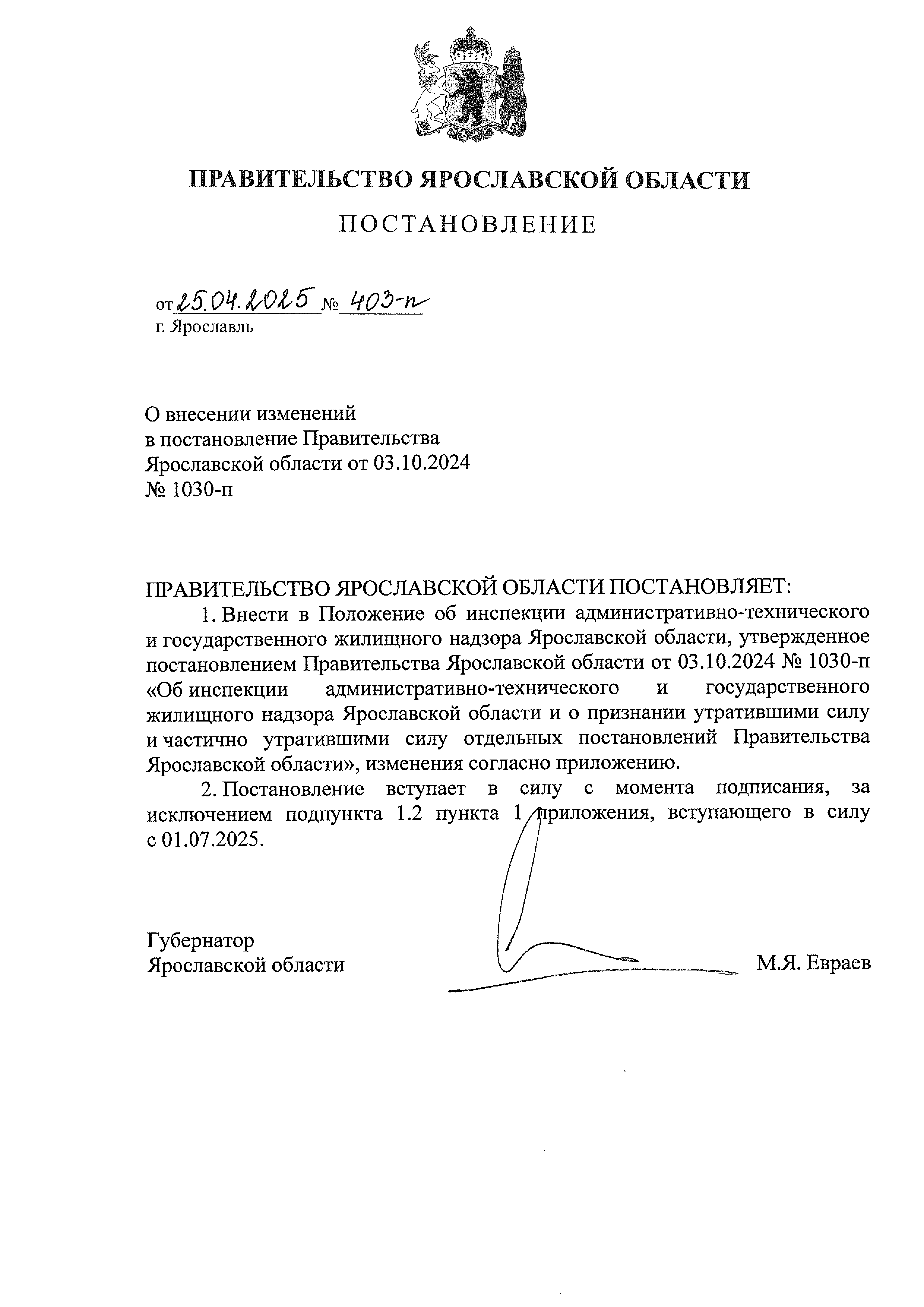 Постановление Правительства Ярославской области от 25.04.2025 № 403-п