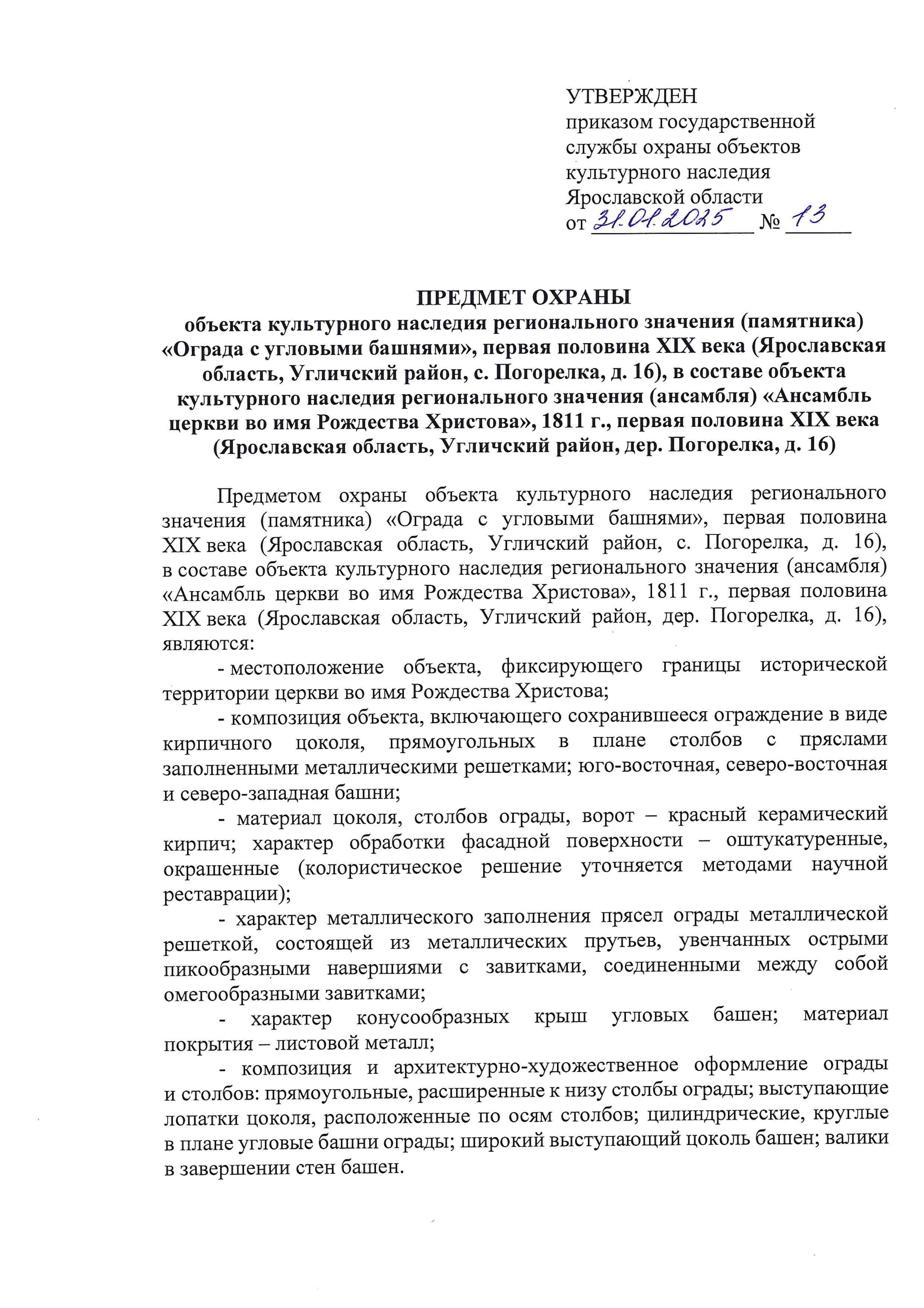 Приказ государственной службы охраны объектов культурного наследия Ярославской области от 31.01.2025 № 13