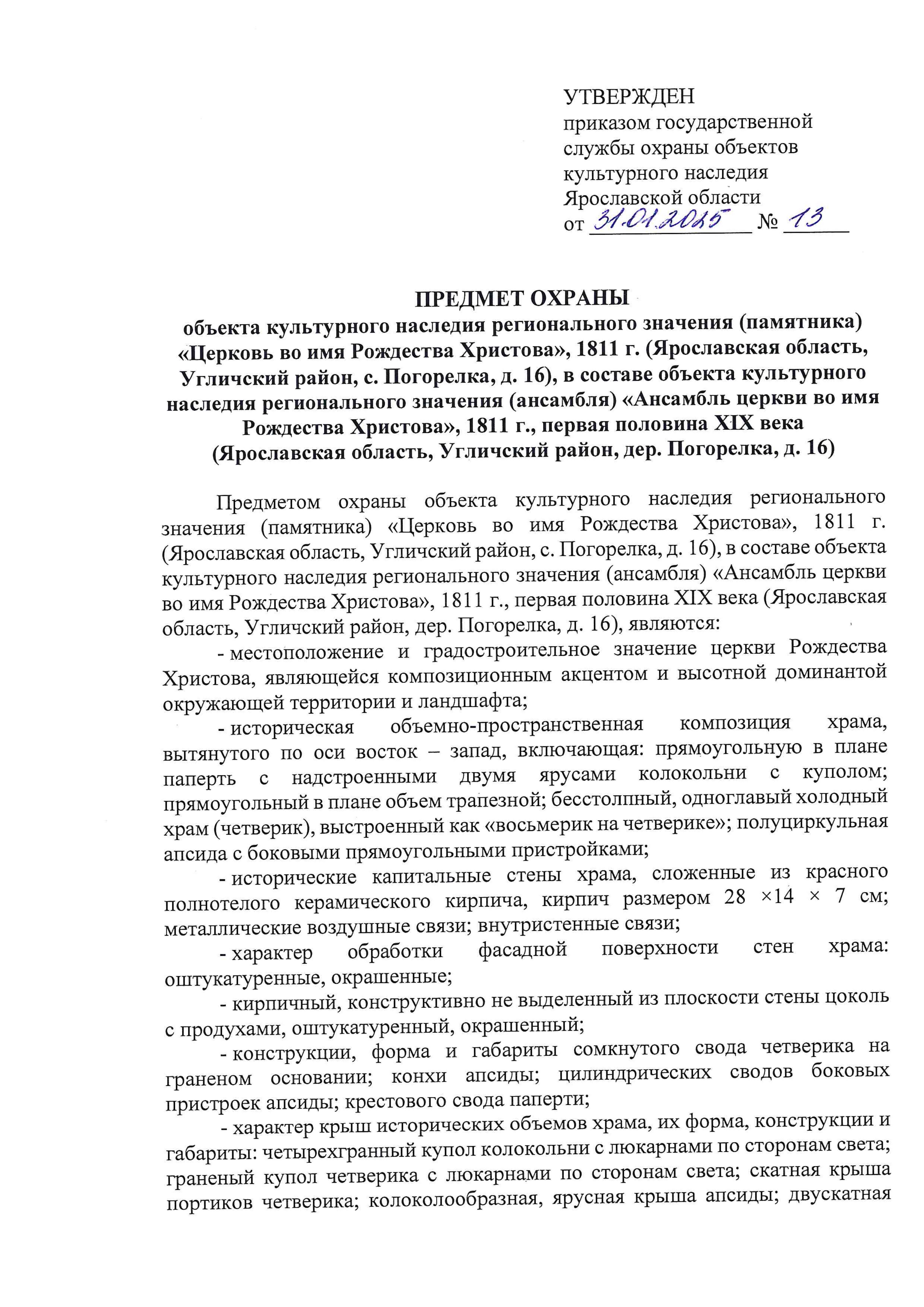Приказ государственной службы охраны объектов культурного наследия Ярославской области от 31.01.2025 № 13