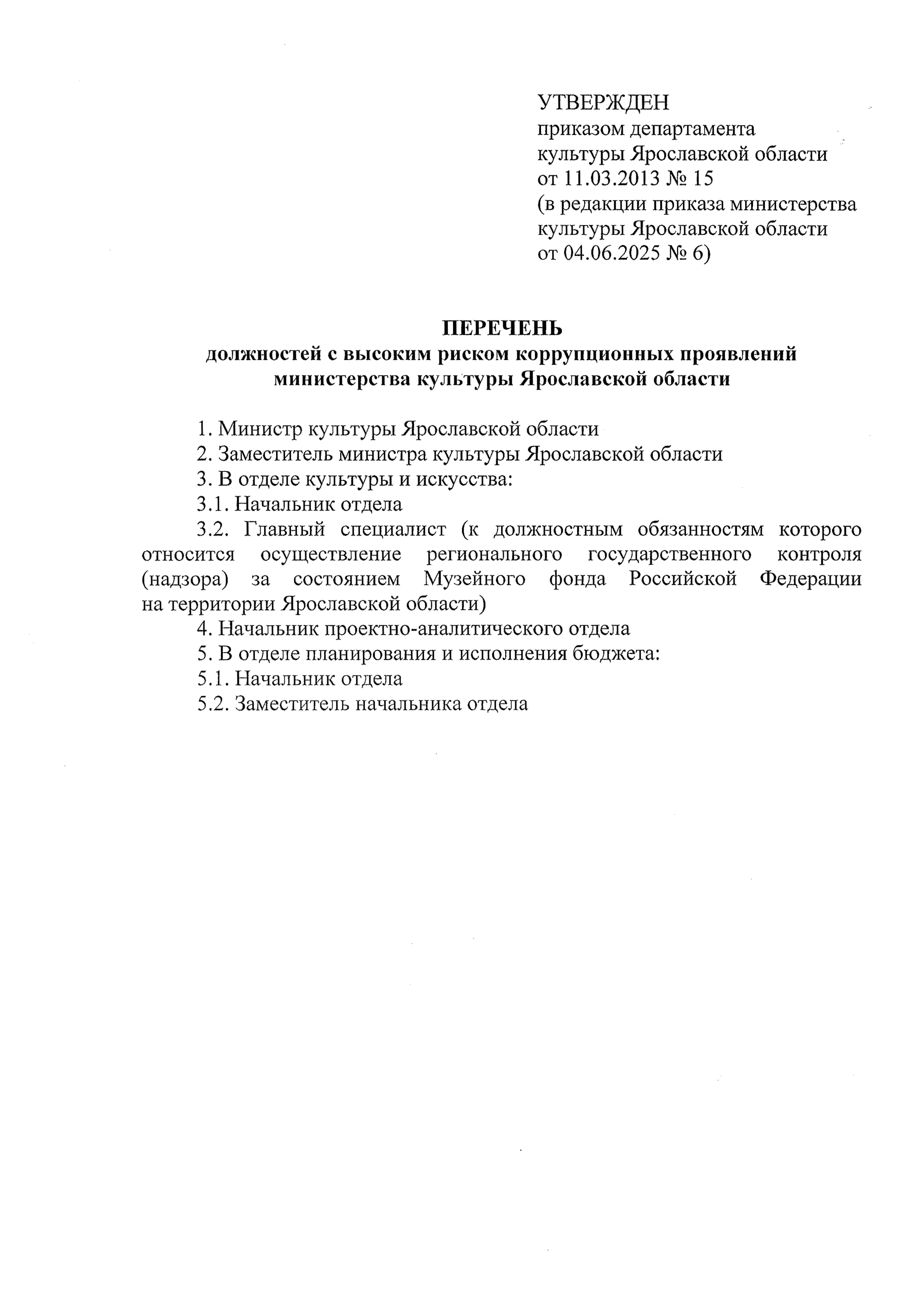 Приказ министерства культуры Ярославской области от 04.06.2025 № 6