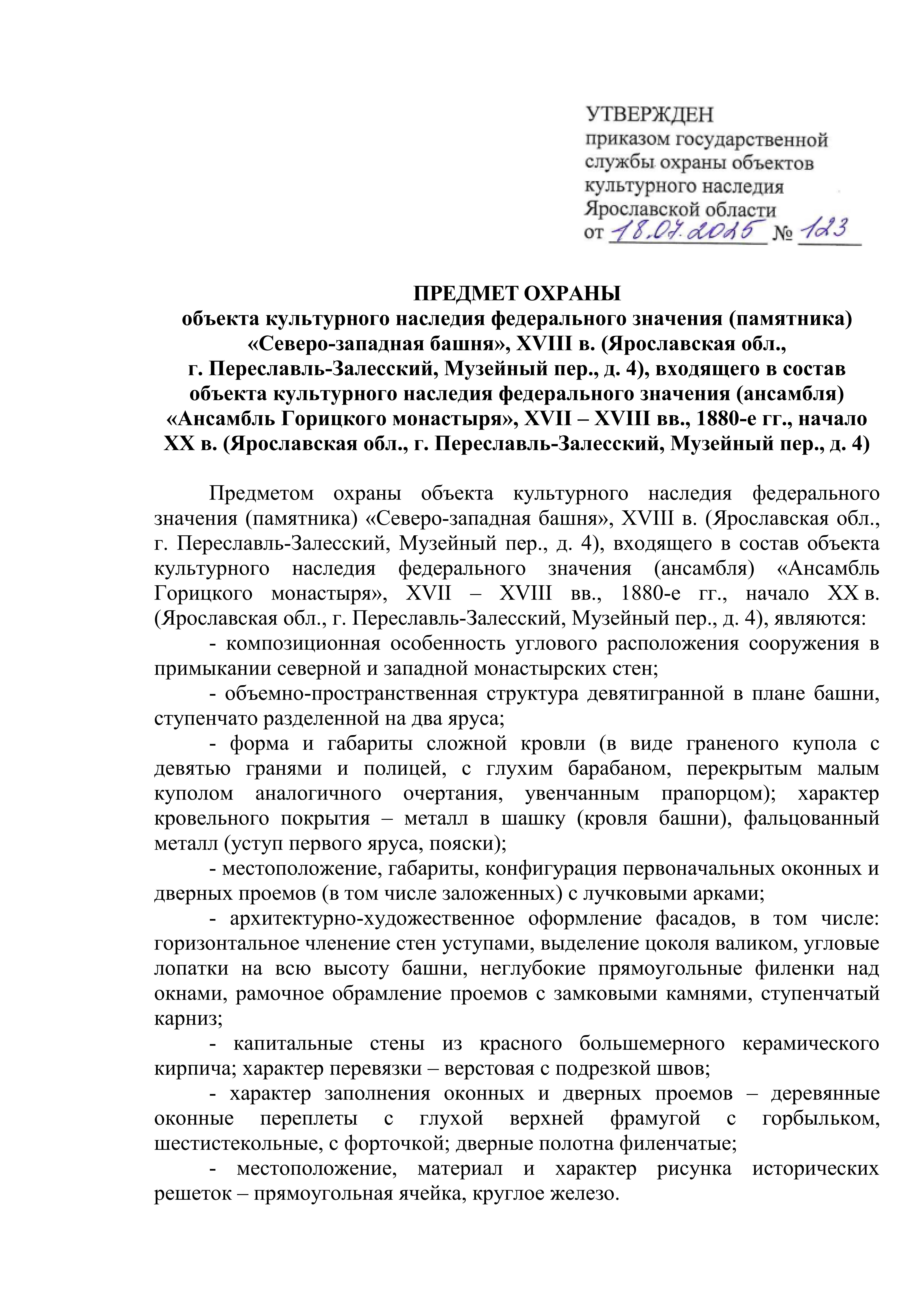 Приказ государственной службы охраны объектов культурного наследия Ярославской области от 18.07.2025 № 123