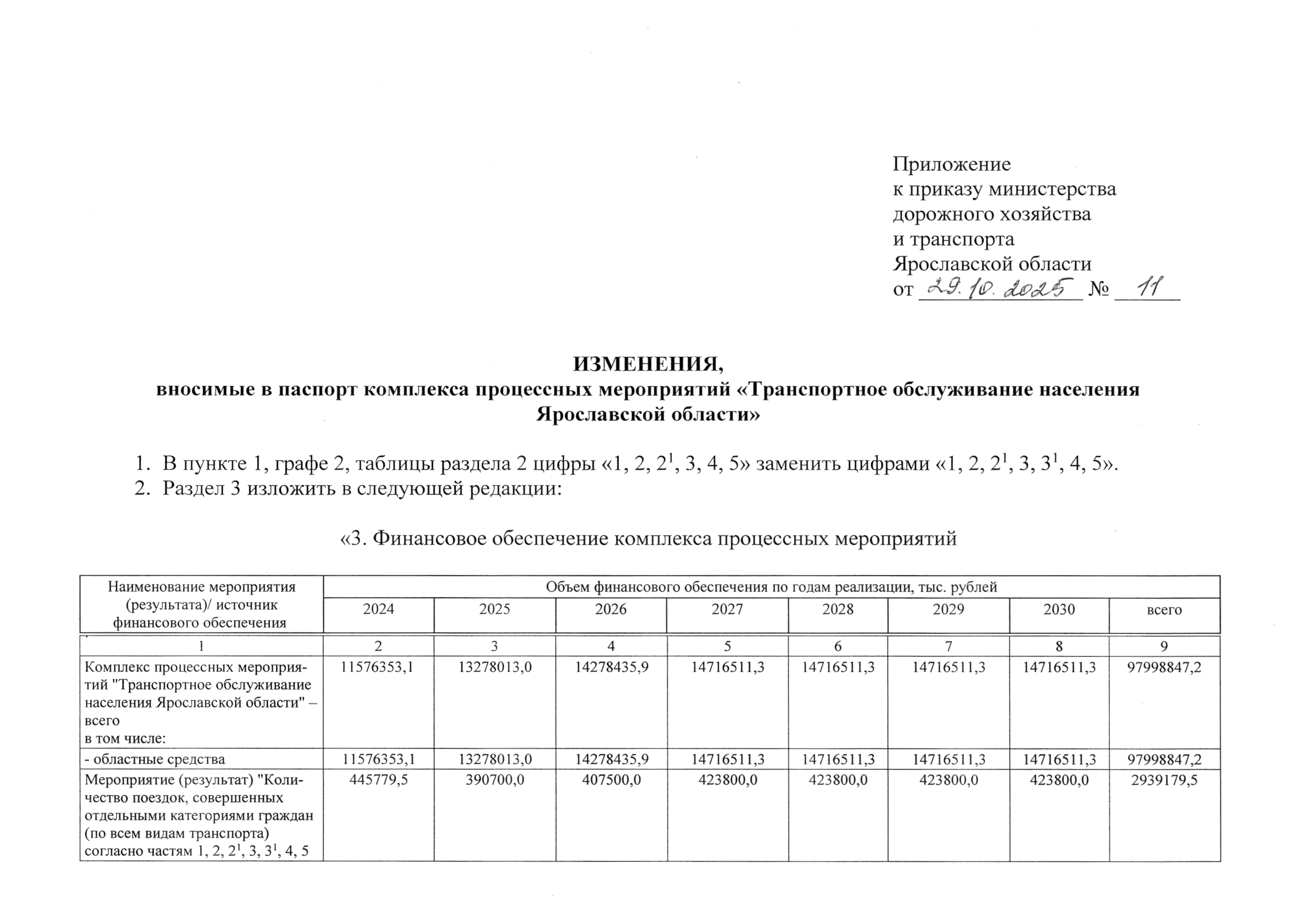 Приказ министерства дорожного хозяйства и транспорта Ярославской области от 29.10.2025 № 11