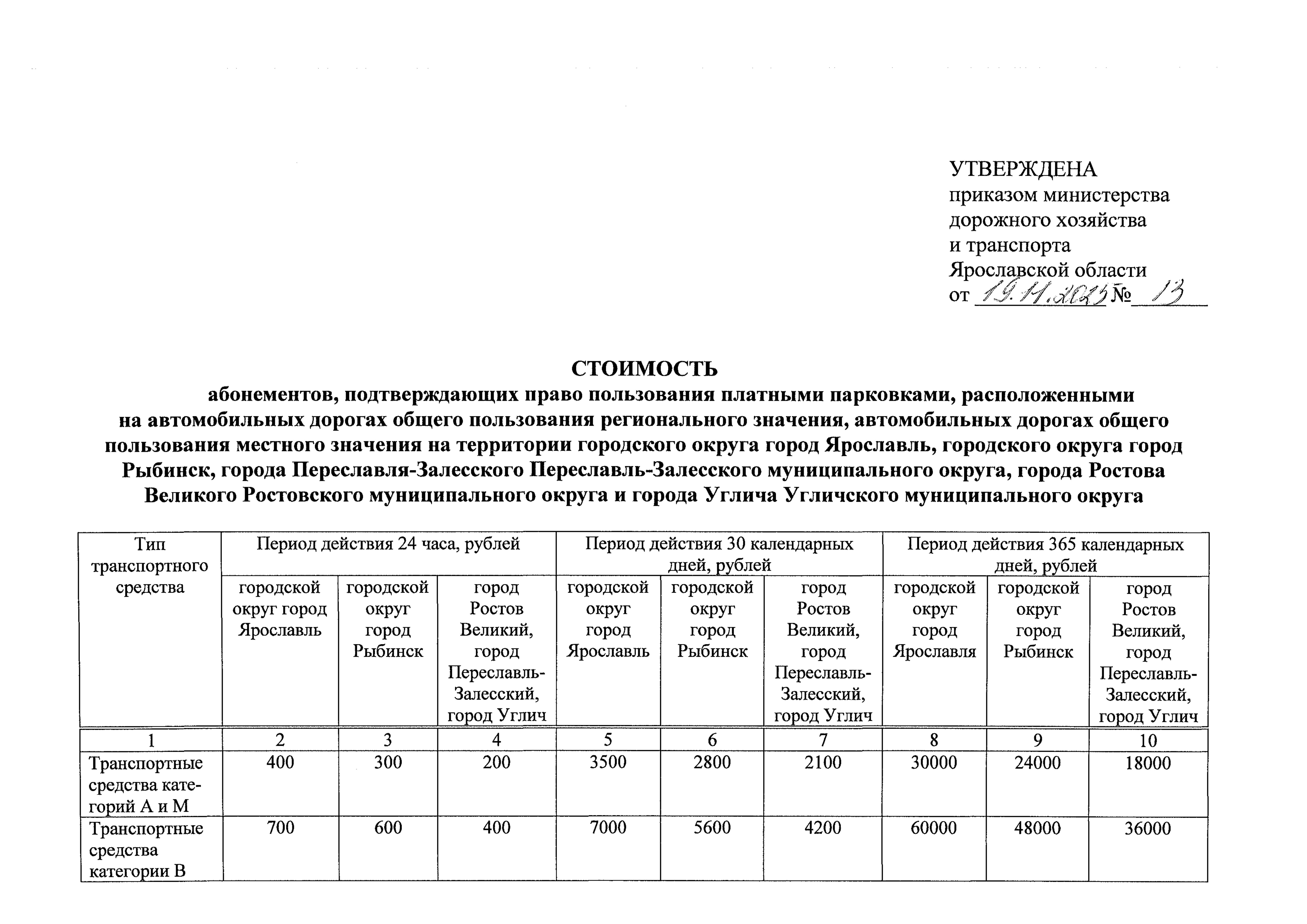 Приказ министерства дорожного хозяйства и транспорта Ярославской области от 19.11.2025 № 13