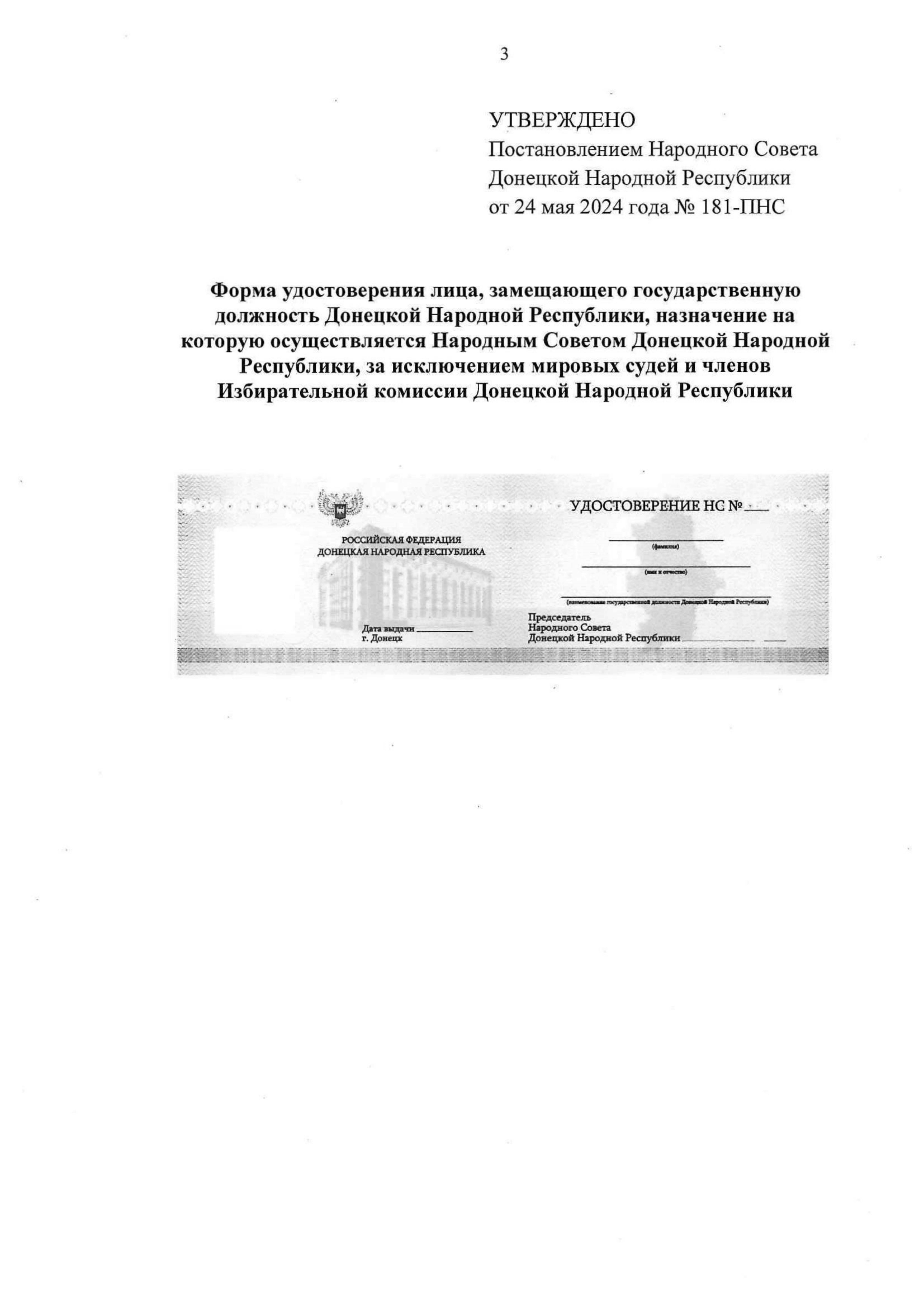 Постановление Народного Совета Донецкой Народной Республики от 24.05.2024 № 181-ПНС