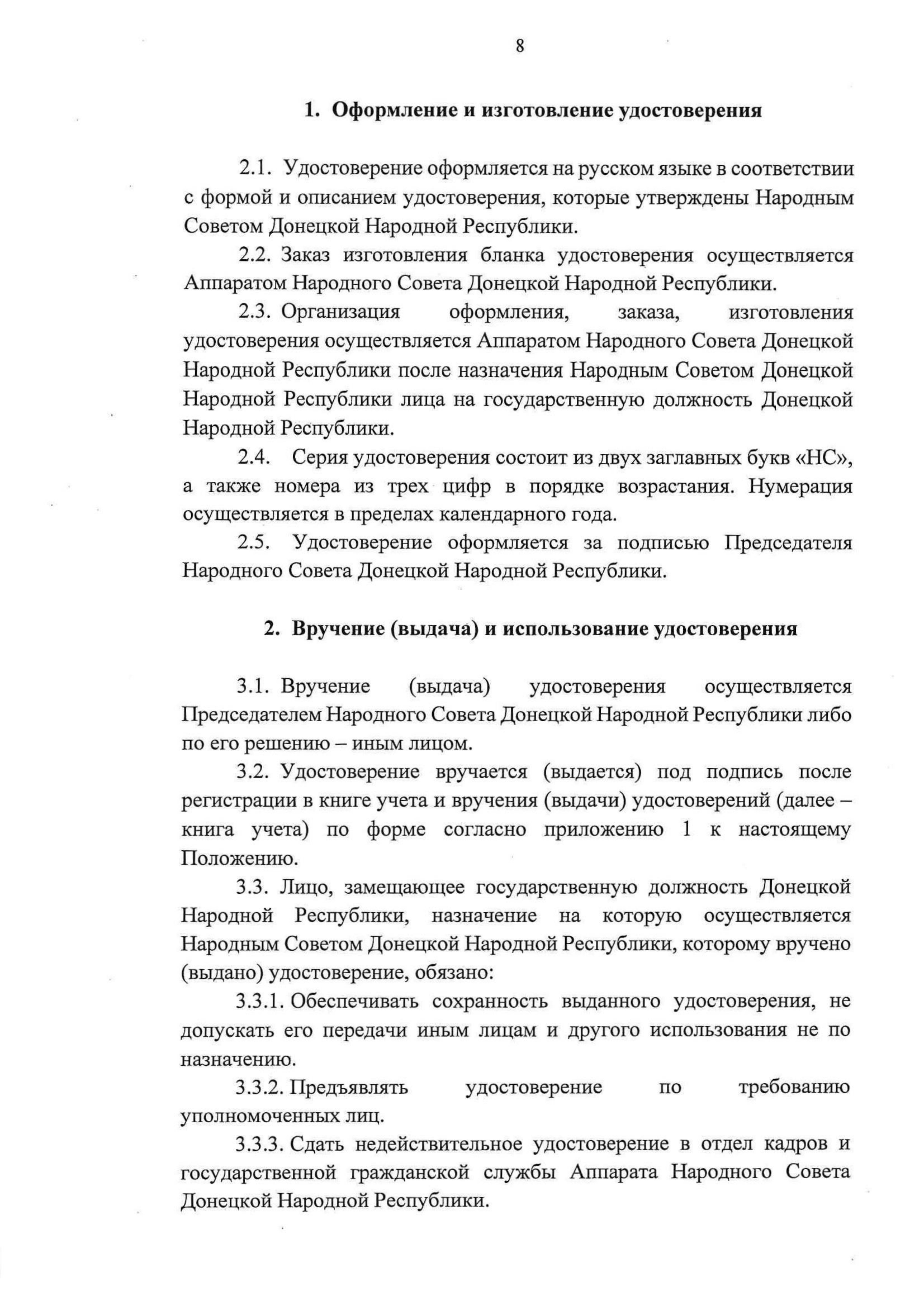 "Об удостоверении лица, замещающего государственную должность Донецкой Народной Республики, назначение на которую осуществляется Народным Советом Донецкой Народной Республики"