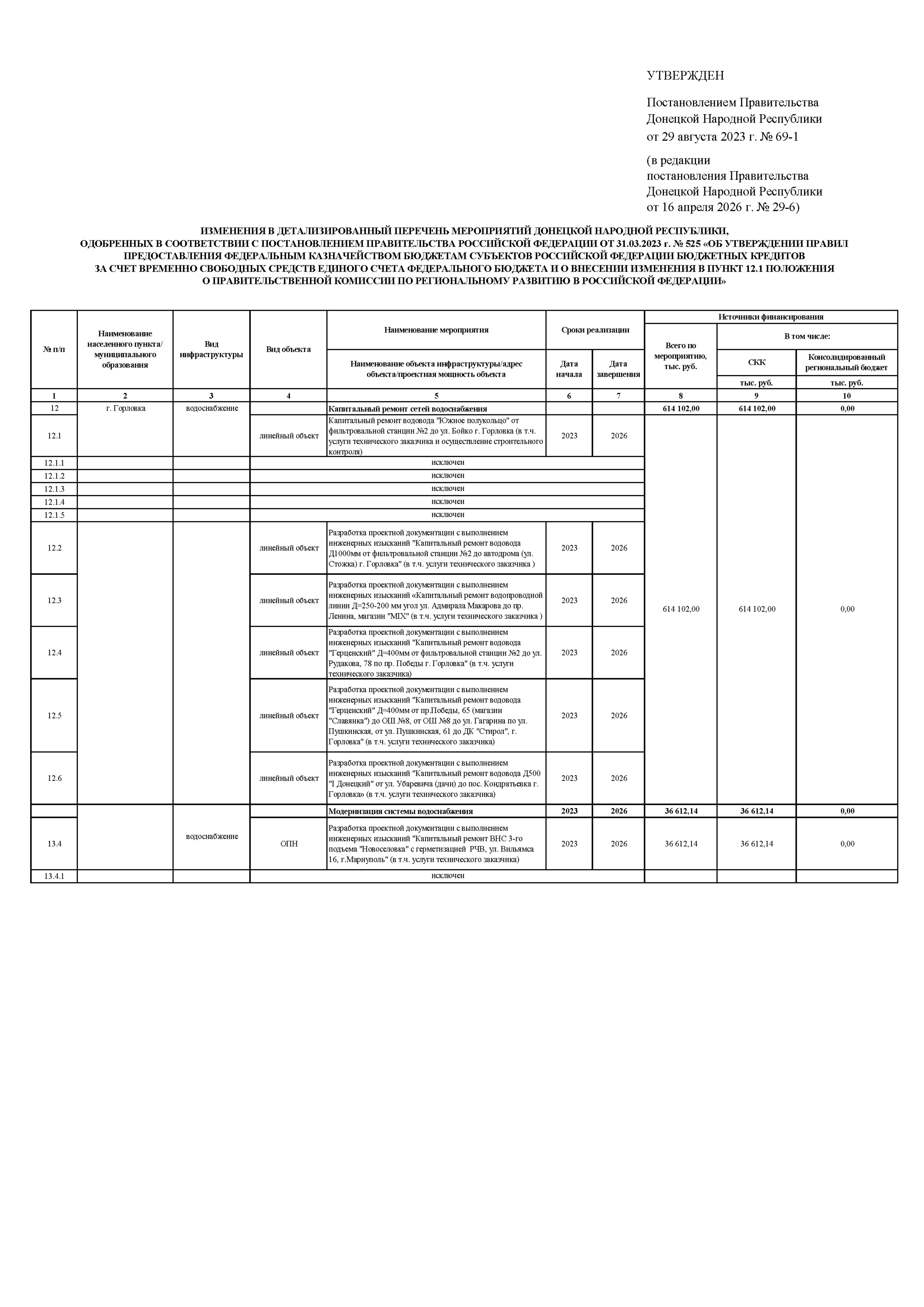 "О внесении изменений в детализированный перечень мероприятий Донецкой Народной Республики, одобренных в соответствии с постановлением Правительства Российской Федерации от 31 марта 2023 г. № 525 "Об утверждении Правил предоставления Федеральным казначейством бюджетам субъектов Российской Федерации бюджетных кредитов за счет временно свободных средств единого счета федерального бюджета и о внесении изменения в пункт 12(1) Положения о Правительственной комиссии по региональному развитию в Российской Федерации", утвержденный постановлением Правительства Донецкой Народной Республики от 29 августа 2023 г. № 69-1"